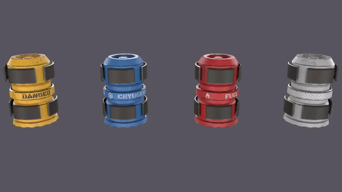 Low-poly Sci-Fi Barrel №5. Contain 4 models of Sci-fi barrel.Part of Sci-Fi collection, which contains some sci-fi props.