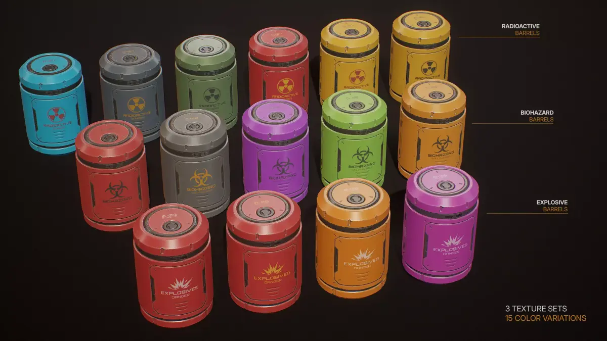 This pack includes three texture sets with a total of 15 color variations, all using one shared mesh: