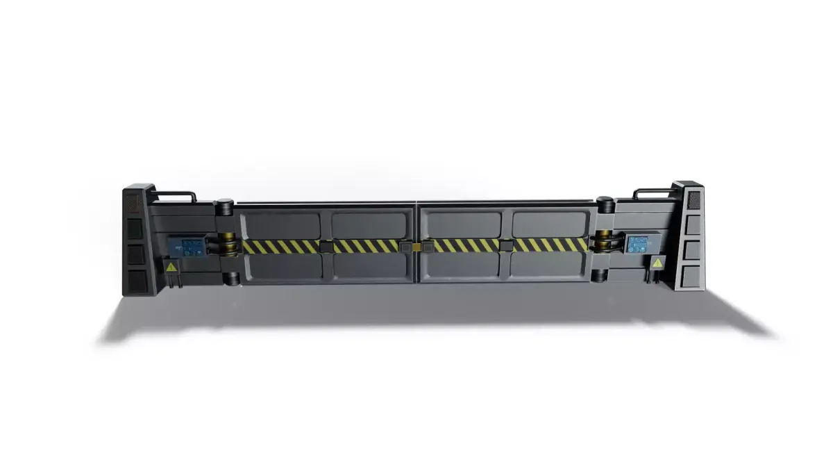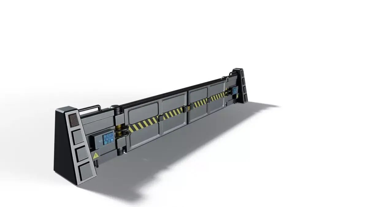 This is a high-quality, game-ready 3D model of a Sci-Fi Barrier. Designed with a mix of industrial and cyberpunk aesthetics, it features hazard stripes, integrated digital control panels, and a heavy-duty modular frame. Perfect for sci-fi military bases, futuristic city checkpoints, or industrial zones.
