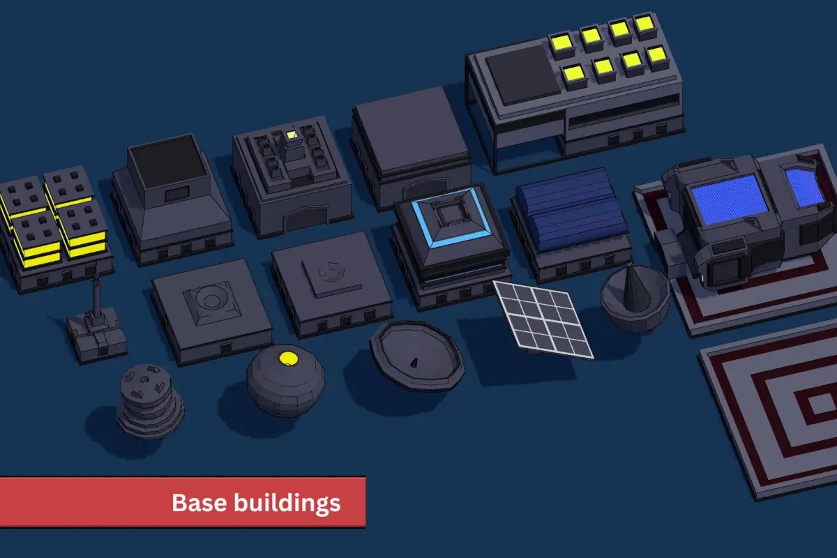 - Buildings (x16) Battery, Warehouse, Generator, Antenna, Drone Hub, Extractor