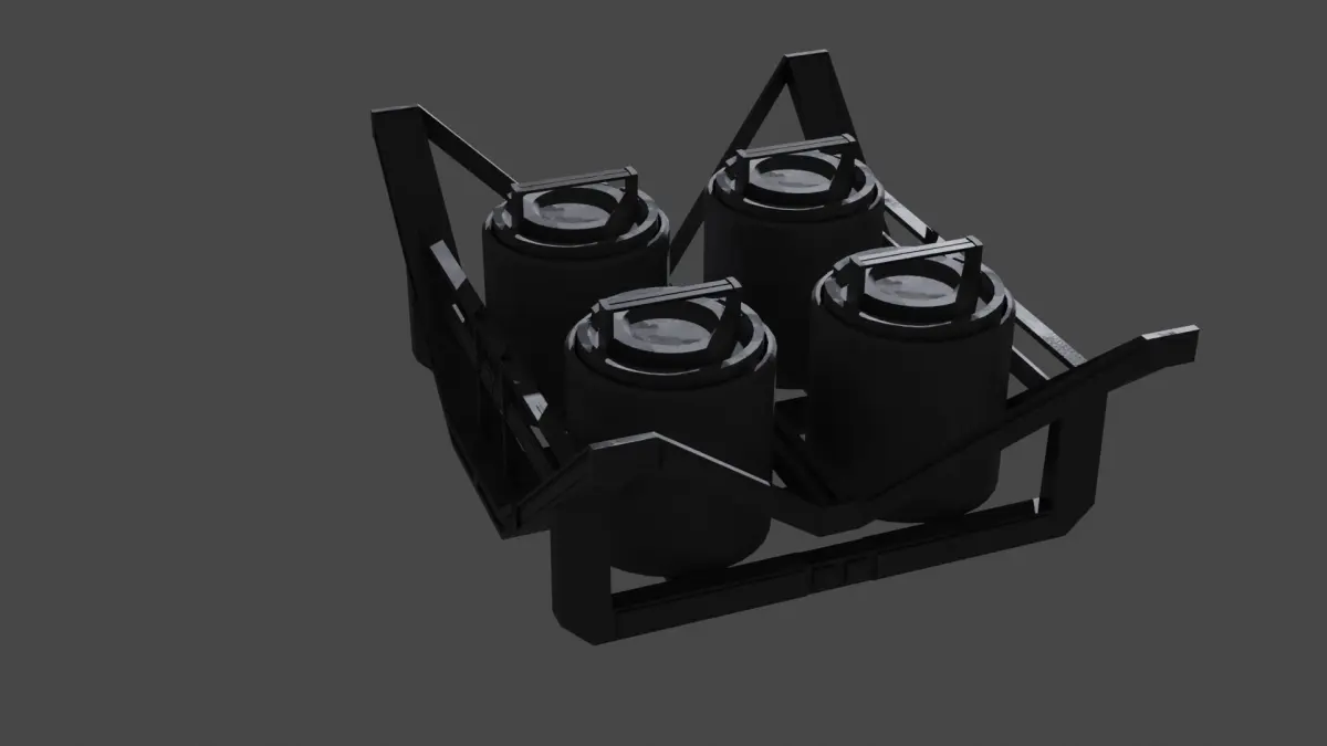 4 Sci-Fi Batteries in a Metal container for transport.