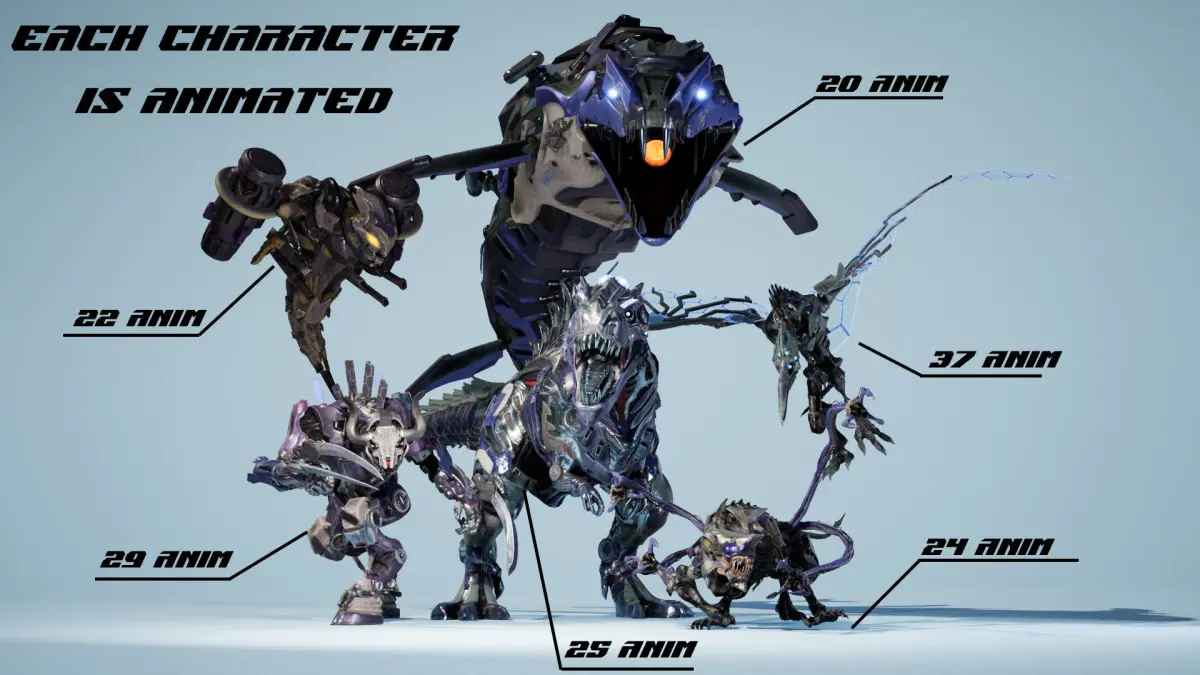 UPDATE (21.10).-Add 27 animations-Fix Flying/Swim AnimsThis pack contains 6 characters, (a total of at least 9 versions of the type of character). each character has 3 skin versionsAll characters have custom skeleton (Images Included)