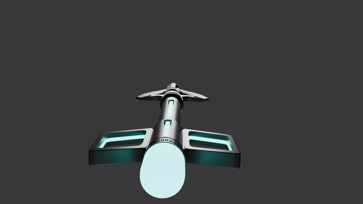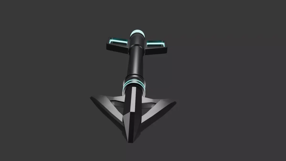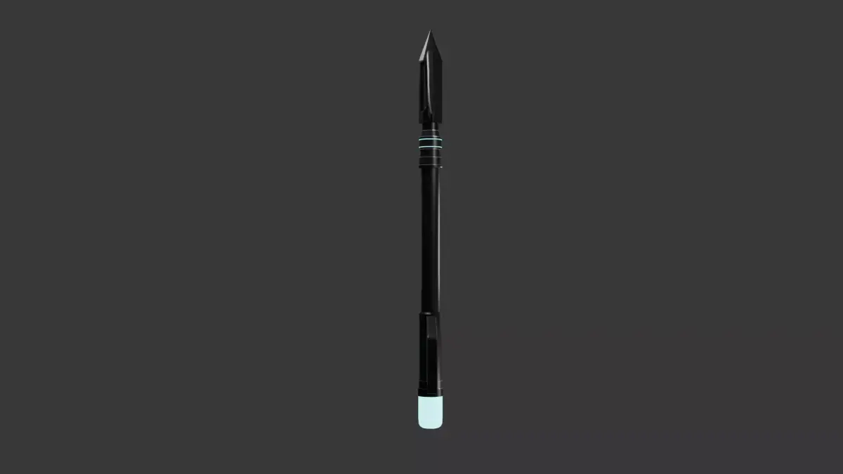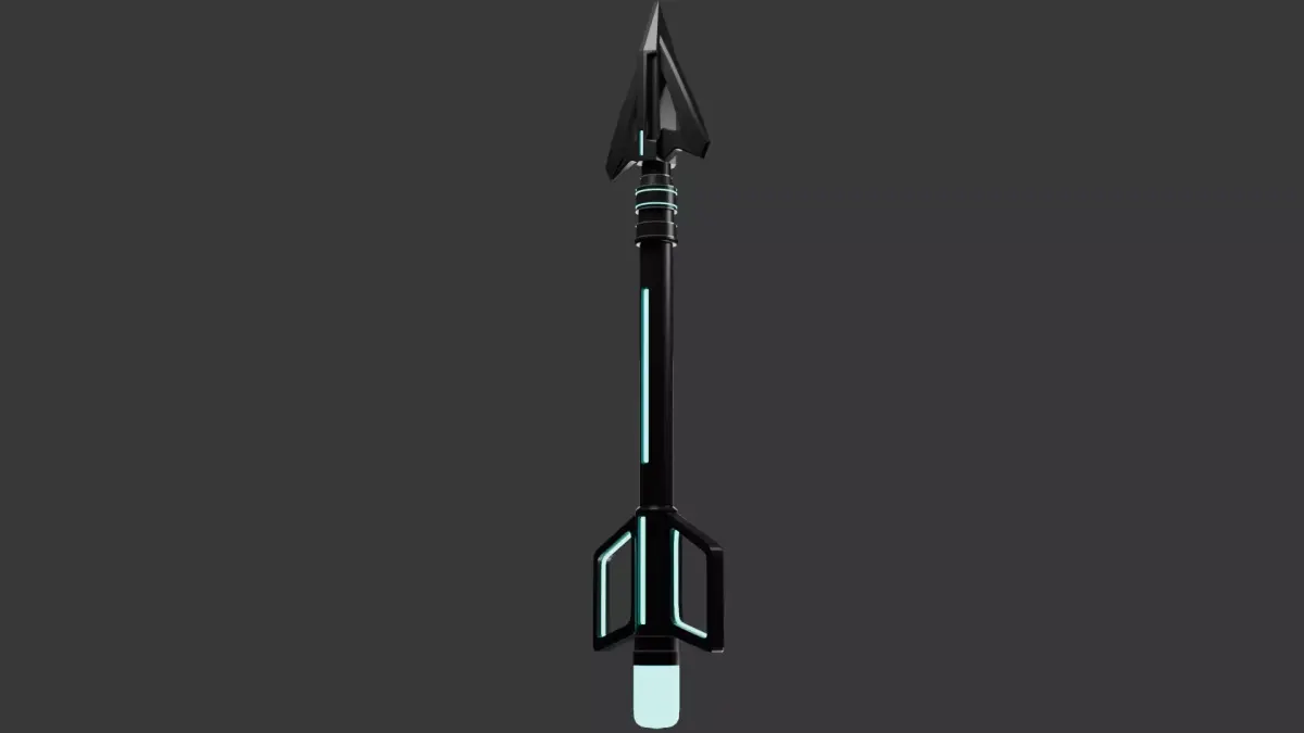 This futuristic arrow features a sleek black body accented with glowing cyan light strips, giving it a high-tech and sci-fi aesthetic. Its clean geometry and balanced proportions highlight a modern, minimalistic design approach that blends realism with futuristic style — perfect for cyberpunk or sci-fi themed projects.