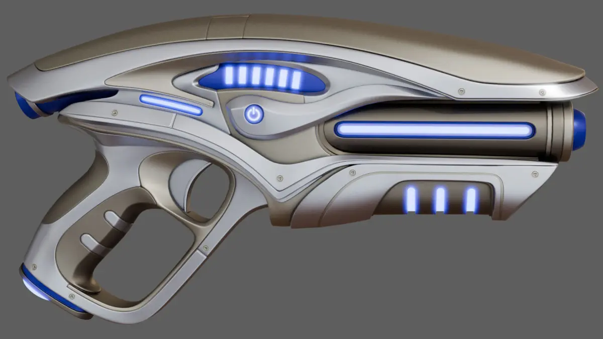 The sight was supposed to be a collimator or something like that, but you can see that it is just glass. I could add a red dot, but there is no point in this, because it is wrong. That is, you will also need to create the sight yourself.It is assumed that the sight will pop up when you press the button on which the sight is drawn.The power button turns the blaster on and off.The button with a bullet and arrows is the button for changing the firing mode. Above there are lights that are also shaped like bullets (although they look like bottles). The left light (which is alone) should be lit when the single shot mode is on. And the three right lights should glow when the automatic shooting mode is on.