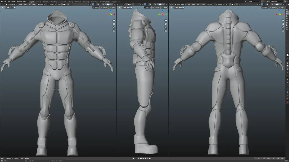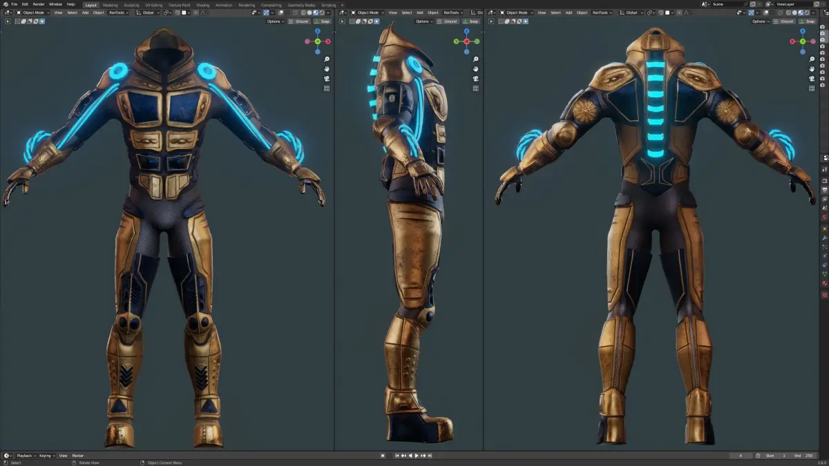 This Cyberpunk Sci Fi Body Armor concept 3D model was created in Blender.