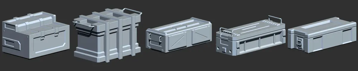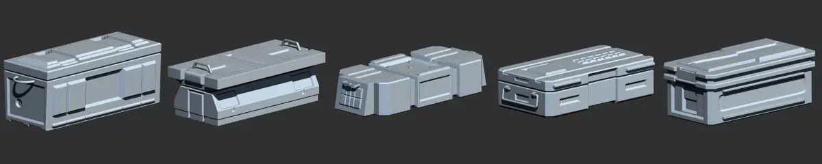 This pack includes 15 sci-fi box 3d models as base mesh to add more detail in your 3d projects.