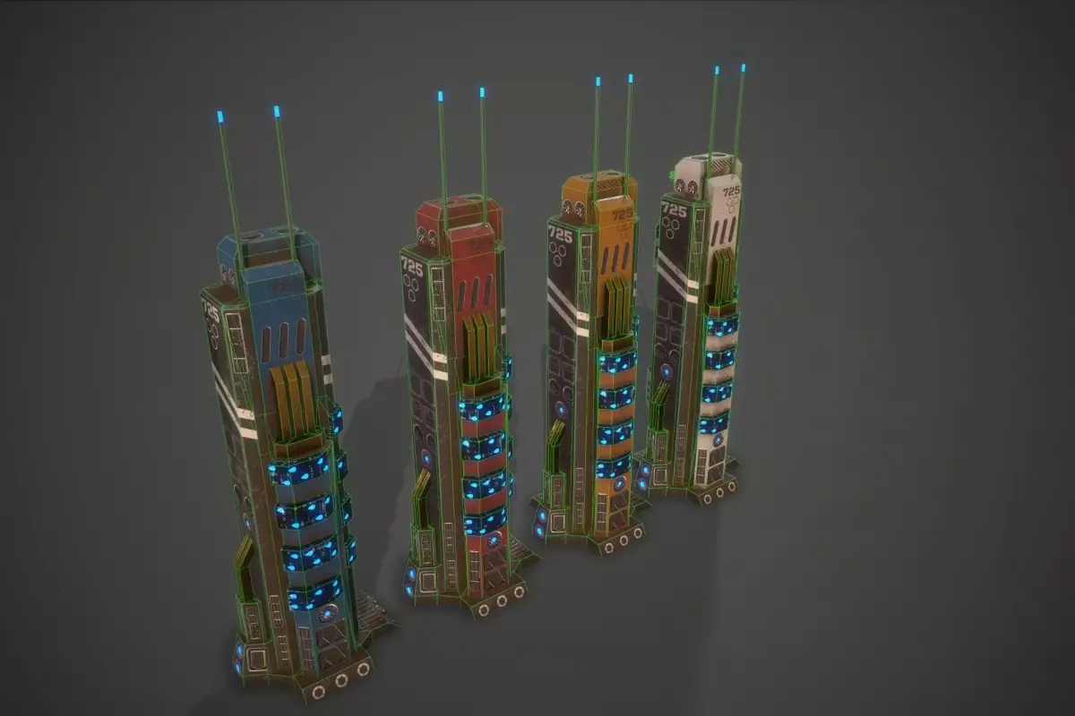 Sci-Fi Building-05 Package is a high quality model to add more details and realism to your projects. All colors can be easily modified. Unreal Engine compatible models FBX . PROFESSIONALLY MODELED Models in scene were made without ngons and to keep polycount as low as possible: WELL ORDERED Like all our products this Sci-Fi Building is handy to use and easy to modify. In this product there is no problem with multiplied materials and textures! There is more models of this series – explore our models set! It is suitable for game engines :) Game Environment is low-poly model ideal for game engines (Game-Ready). Very High detailed Game Environment ready for professional projects.