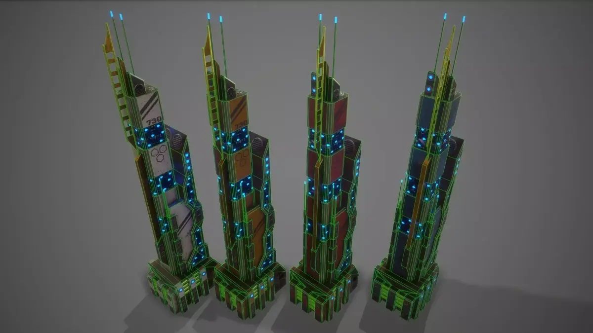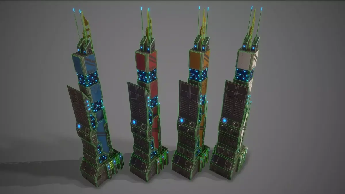 Supports Built-in Render Pipeline and URPNumber of Meshes:1 (OBJECTS)Number of Materials: 1Number of Textures: 8Textures uv 2048-2048(PBR)=Normal--Metallik--Roughness--Emissive--BaseColorFour different base colors White,Blue,Yellow,RedFour different emissive colors Pink,Blue,Orange,GreenProperly named Textures,Materials and MeshesModel is fully textured with all materials applied. You can edit the material :))The pivot points are properly positioned.building 10 Polygon 924Model completely unwrapped.Texture 2048-2048PBR AVAİLABLEModel is fully textured with all materials applied.Pivot points are correctly placed to suit animation process.