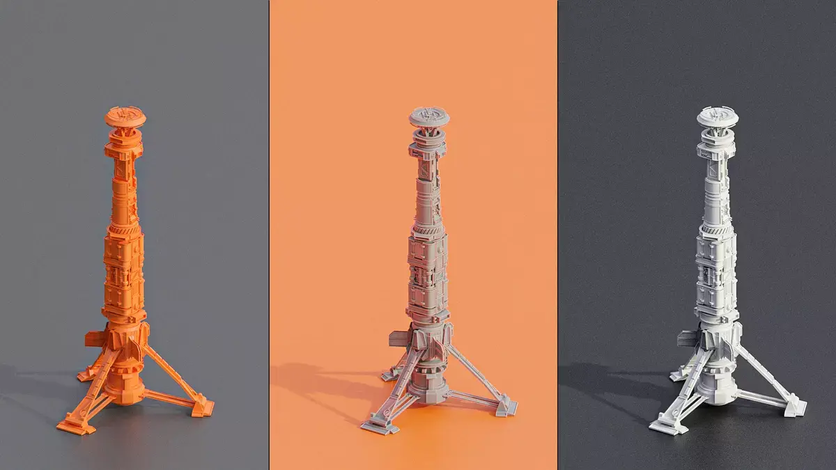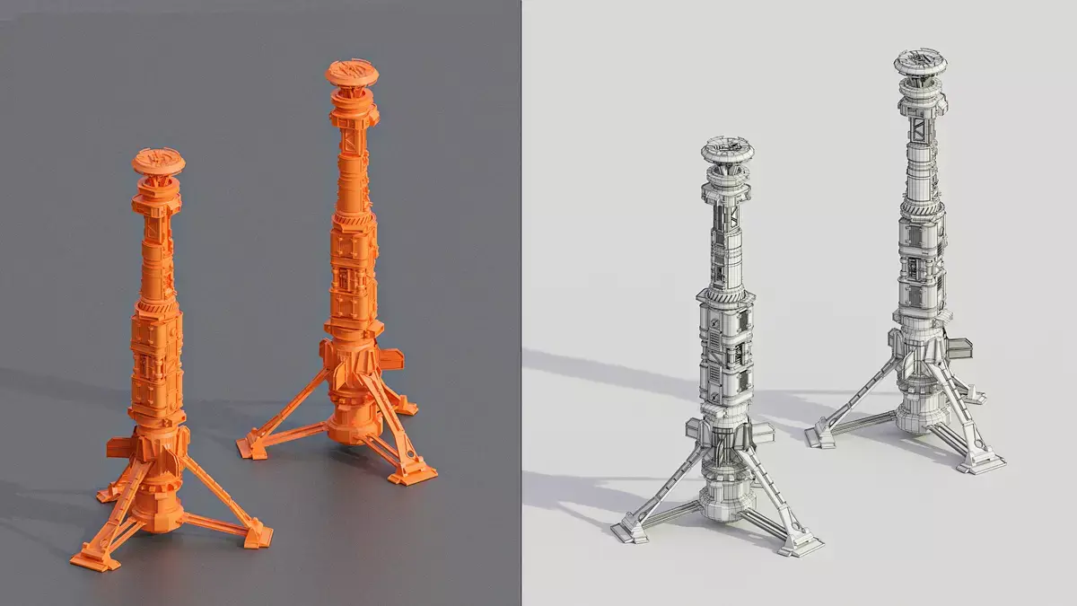 Sci Fi Buildings Rocket Tower Skyscraper 3D Model Free low-poly 3D model
