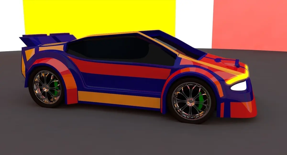 This is a 3d model of a Sci Fi racing CarThe model was created in Cinema 4d All parts and material are named accordingly