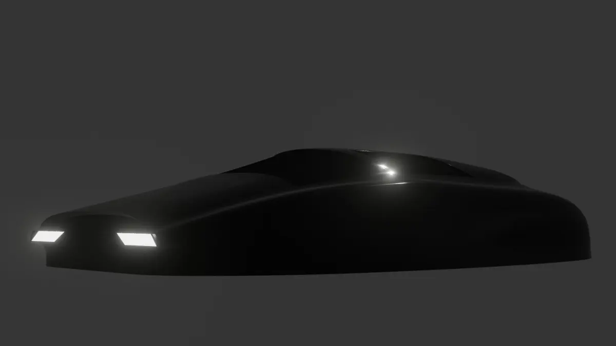 A sleek and futuristic 3D model of a sci-fi car, hovering above the ground with anti-gravity technology. The aerodynamic design features metallic curves, tinted windows, and LED strips, showcasing a cutting-edge vehicle from a distant future.