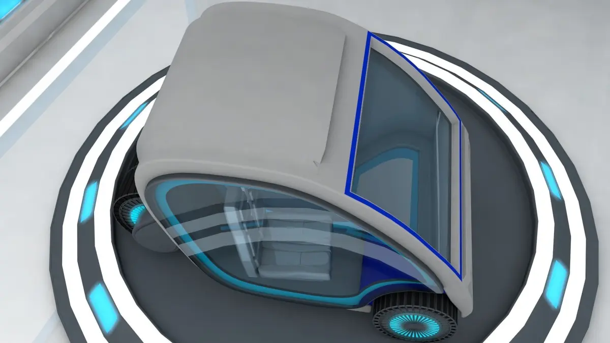 Detailed 3d model of futurist sci-fi car + Sci Fi Room
