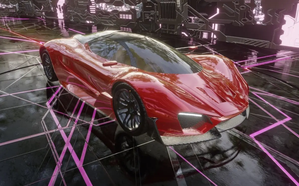 Sci Fi Car Scene Ready for Blender 3D 2.8, 2.9 +Eevee and Cycles Settings. PBR Materials, Textures in 4K and 8K. All Settings included. Formats: Blend, Obj+Mtl, Fbx.