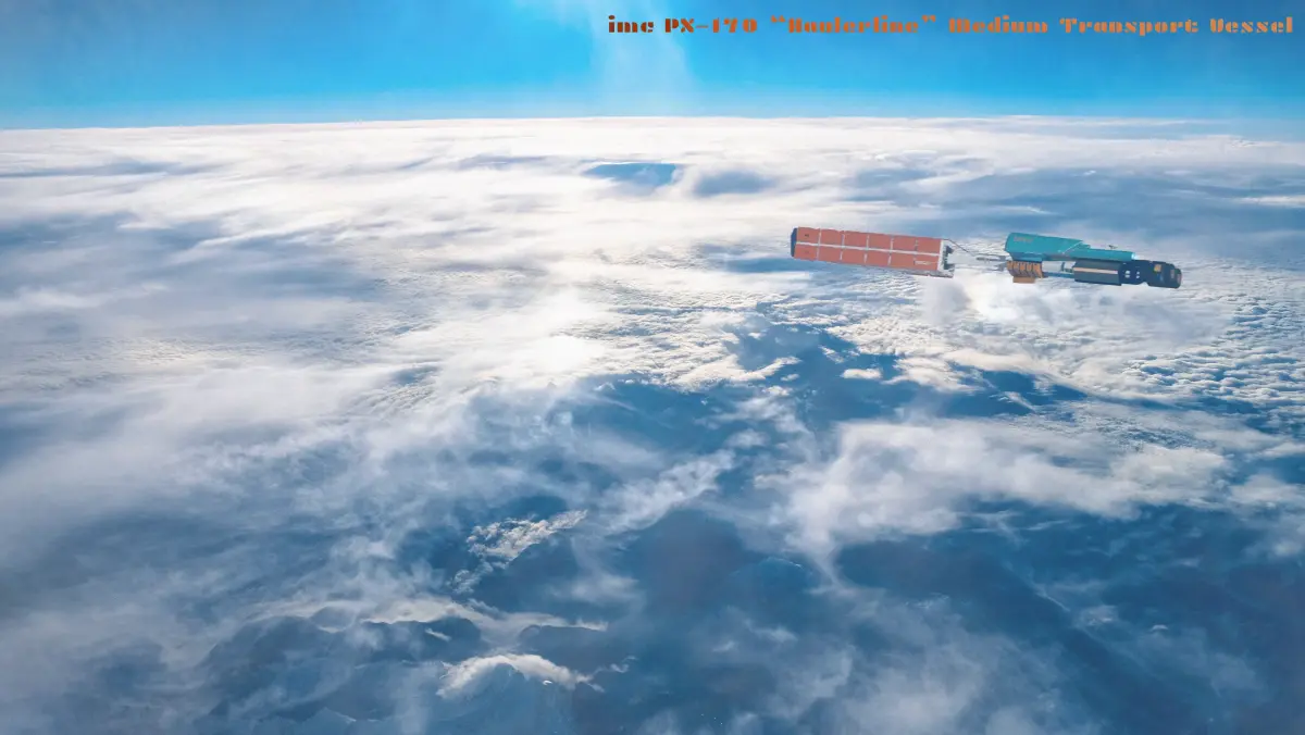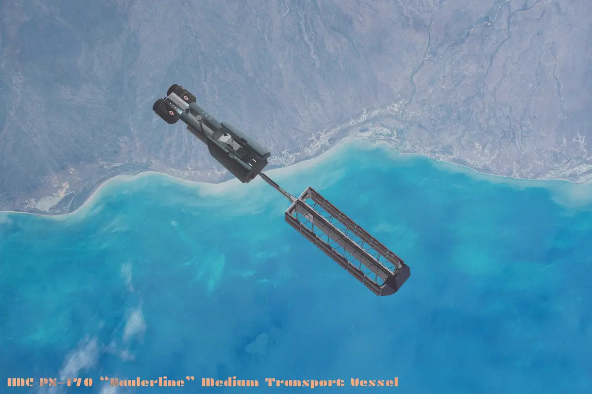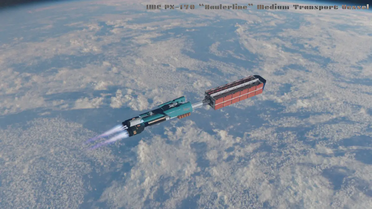 High-quality sci-fi cargo transport spaceship 3D model with an industrial, realistic design. Features multiple 4K PBR texture sets and clean hard-surface geometry, suitable for games, cinematics, and visualization.