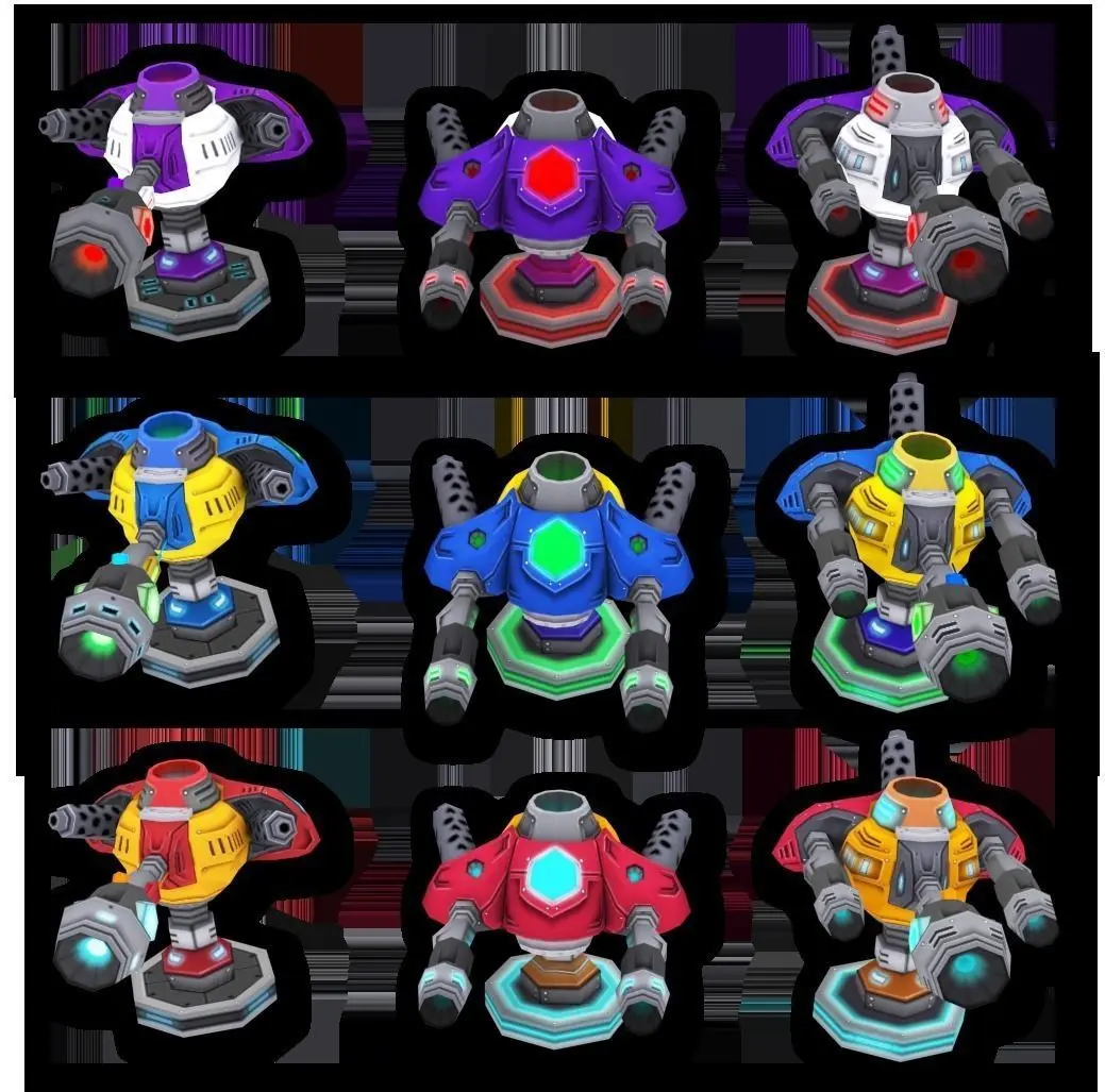 This pack contains over 18+ prefabs SciFi cartoon ultra weapons to construct Game. include : SciFi cartoon ultra weapons , tower ,effect laze , effect machine guns ... (400-700 polys ) This package contains 6 weapons x 3 styles (6 towers total), with its high quality cartoon style textures 1024/1024