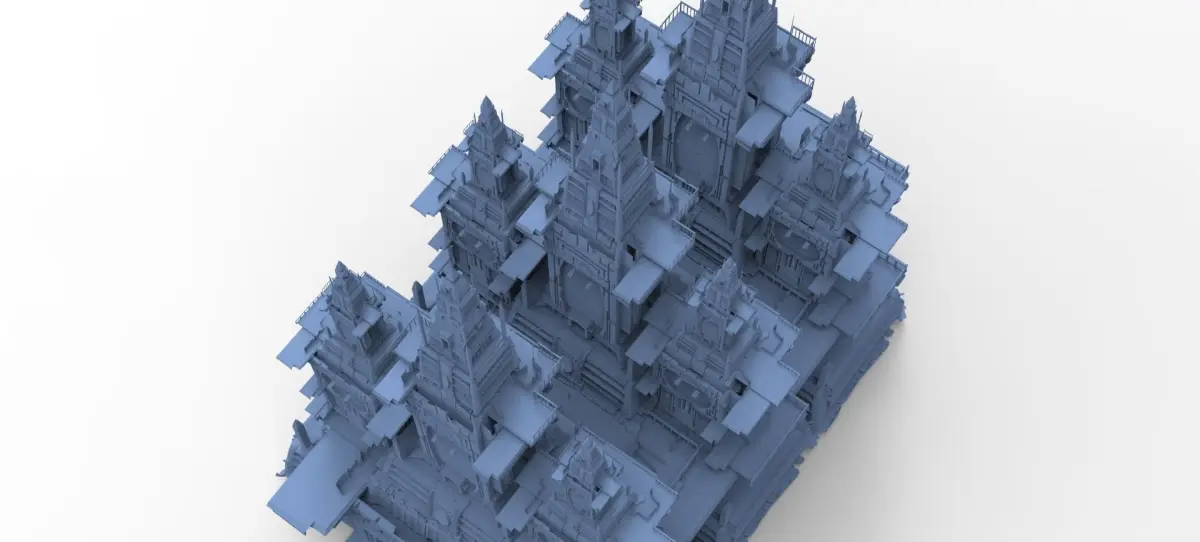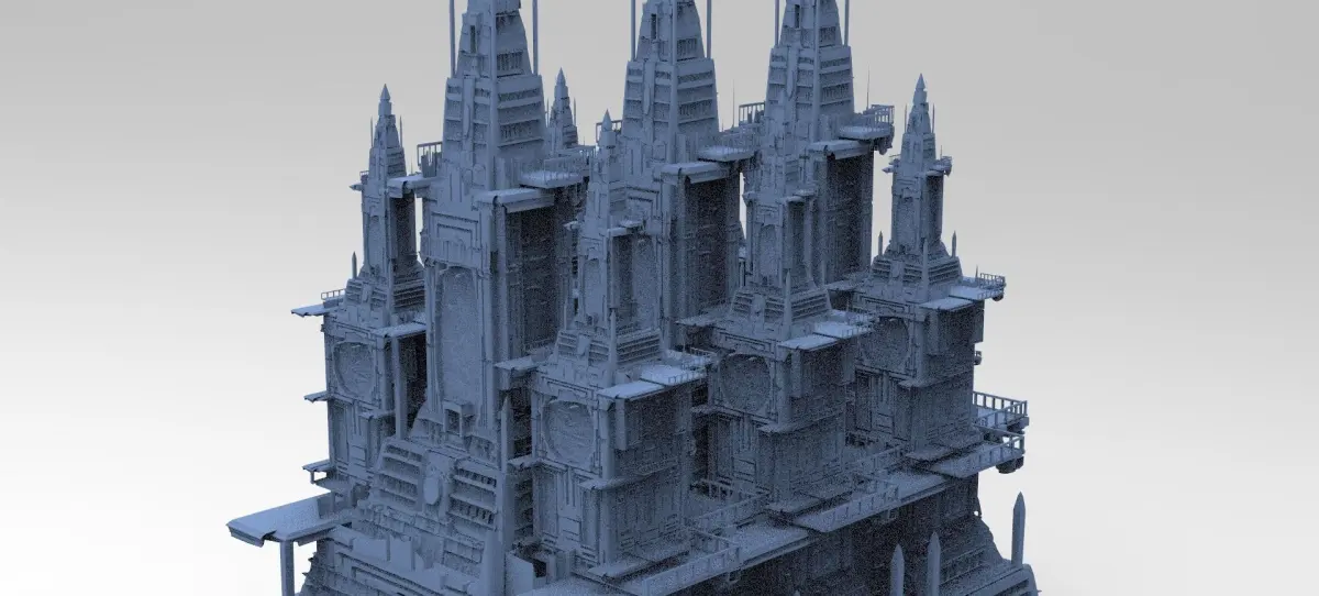 Sci Fi City Block advanced Pyramid Tower complex 3D