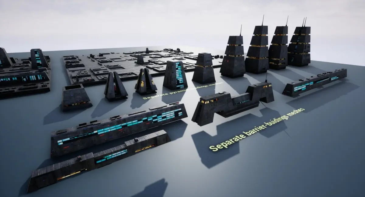 UPDATE (v1.2)! A Big One! Added a lot of new meshes, modified barrier buildings so that those can also be used as connectors in air between buildings, and, can even serve as vertical building parts themselves!