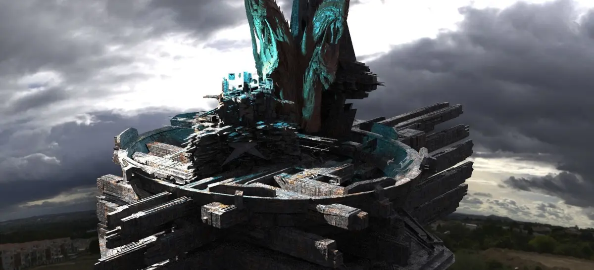 Sci fi City Satalite Science facility 3D! UVmap on Tower but not on dragon heads 3D! Tiled PBR texture provided!