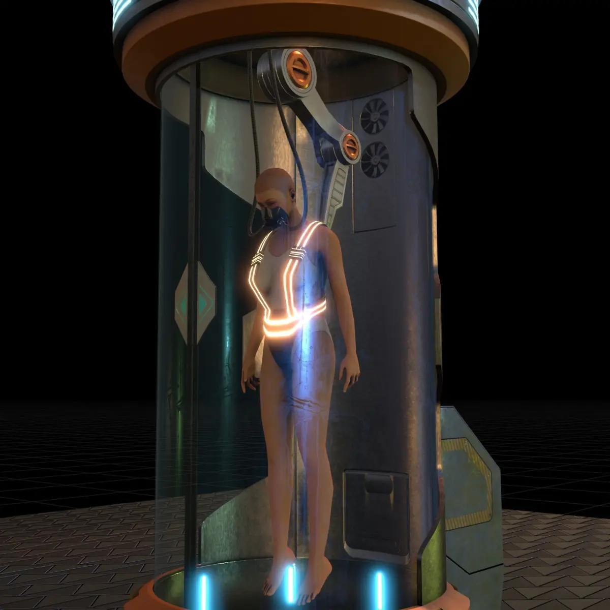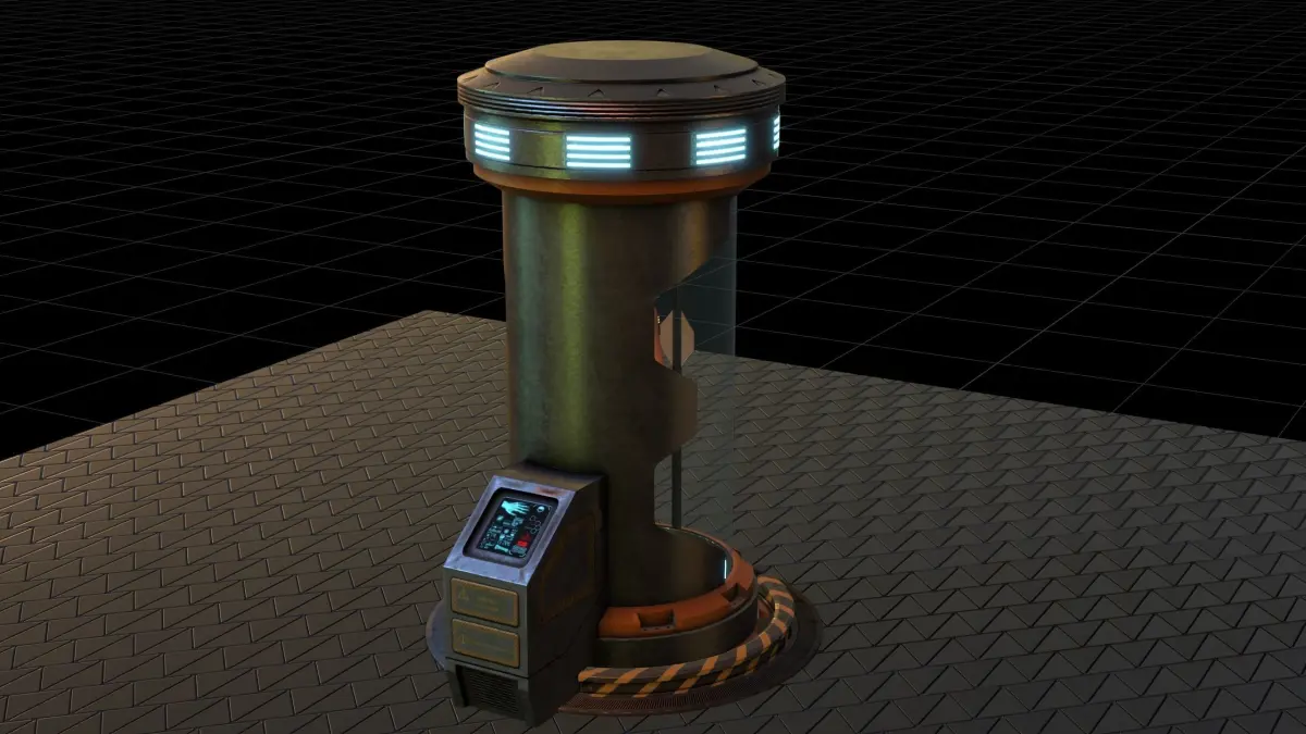low poly sci fi clone capsule model with pbr texture and rigging
