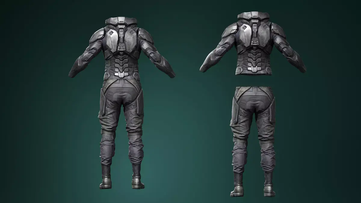 A high-quality sci-fi tactical armor suit designed for futuristic characters and cinematic production. This outfit combines advanced hard-surface armor with flexible fabric underlayers, creating a realistic and functional design suitable for combat-ready characters.
