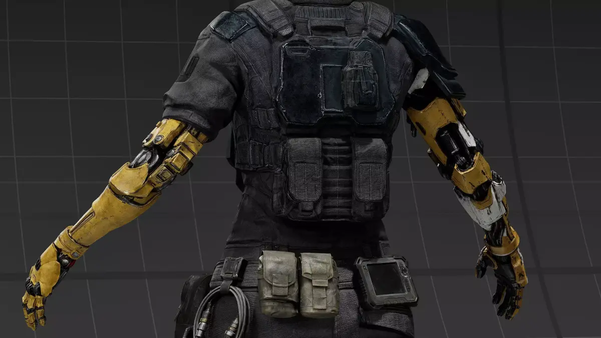 A high-quality sci-fi cyborg outfit designed for futuristic characters, combining tactical clothing with fully mechanical prosthetic arms. This asset is идеально suited for cyberpunk, sci-fi, and dystopian settings, offering a unique blend of human and machine design.