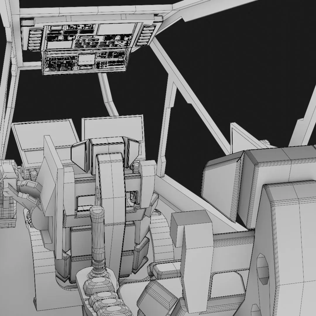 Based on the concept of a futuristic dropship, the cockpit is designed with two seats along with detailed control panels towards the drivers seat.