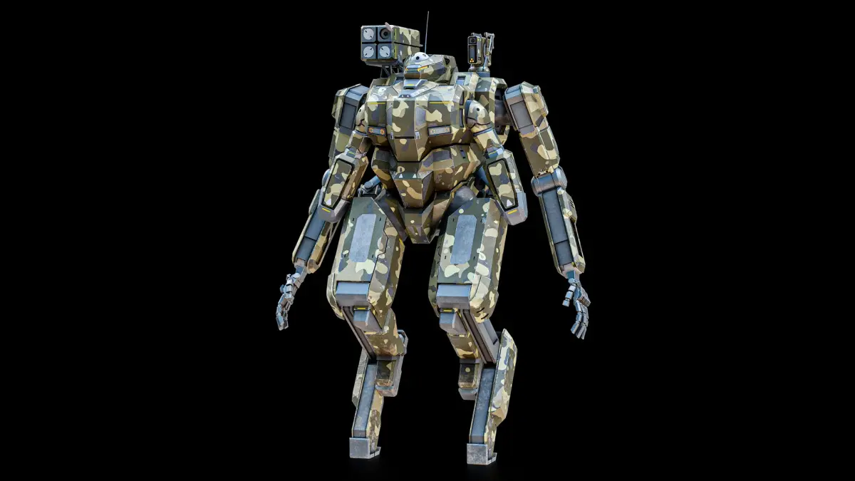 This asset includes base Combat Mech Exoskeleton 3D model with 4 skins texture sets: