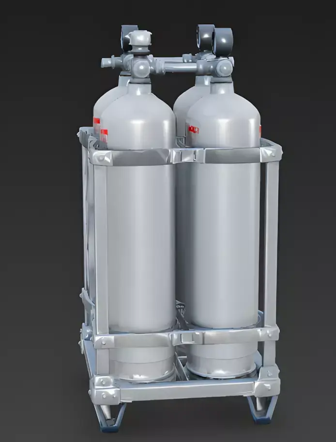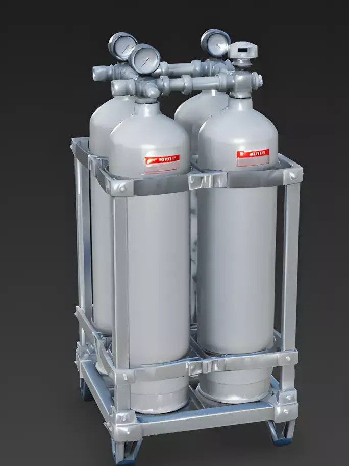The Overall Concept This asset is a cluster of high-pressure gas tanks held in a strong metal frame. It is designed for industrial factories, science labs, or spaceship engine rooms where fuel or oxygen needs to be stored safely.