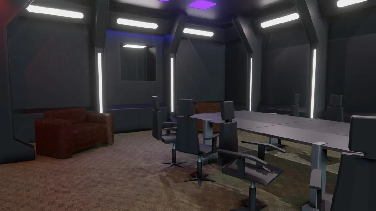 Note : Updated the blend file and textures with latest version blender 3.5 version.A highly detailed starship interior, suitable for use as a conference room.All previews rendered in EEVEE Render Engine, which gives a realistic output.This Conference room Model is made in blender 2.8 version.