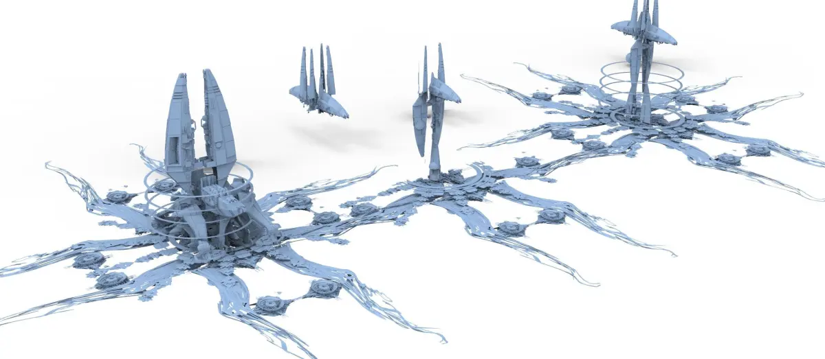 Sci fi Corral Solar array dish towers Low-poly 3D model