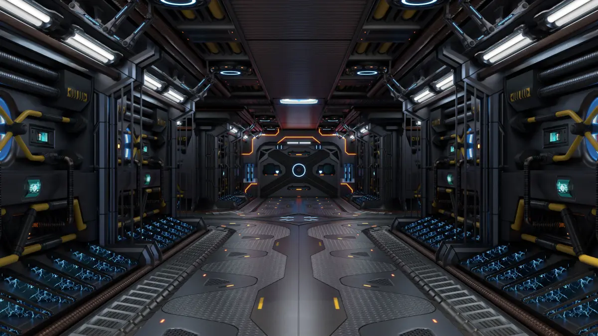 The Photorealistic 3D model of Sci-Fi Corridor 01 With Door. This model is suitable for any visual production - broadcast, high-res film close-ups, advertising, games, design visualization, forensic presentation, etc.
