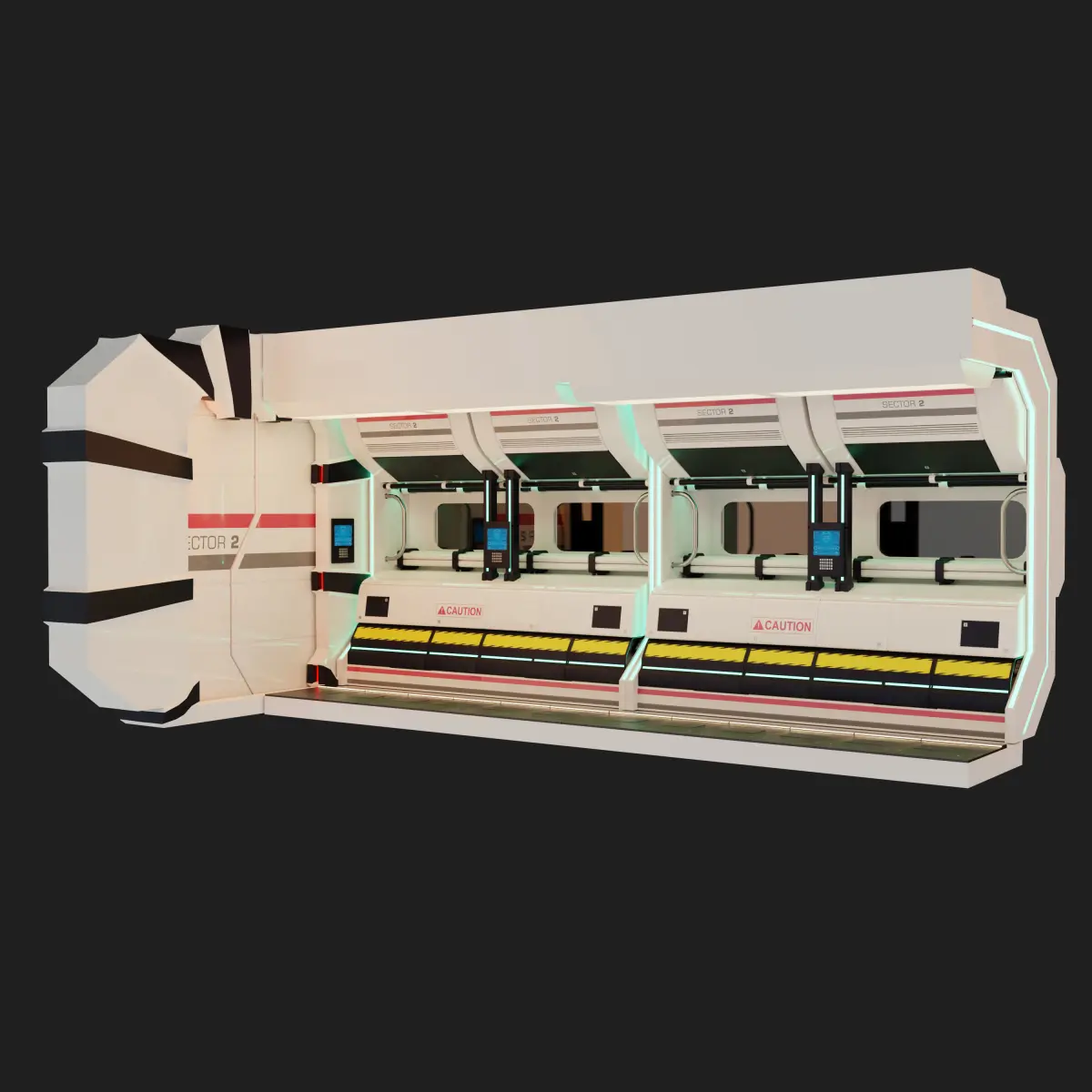 Science Fiction Corridor All objects are grouped, Easy Modular structure, it is very easy to change the length of the tunnel by changing array values and the lighting colors can be changed easily