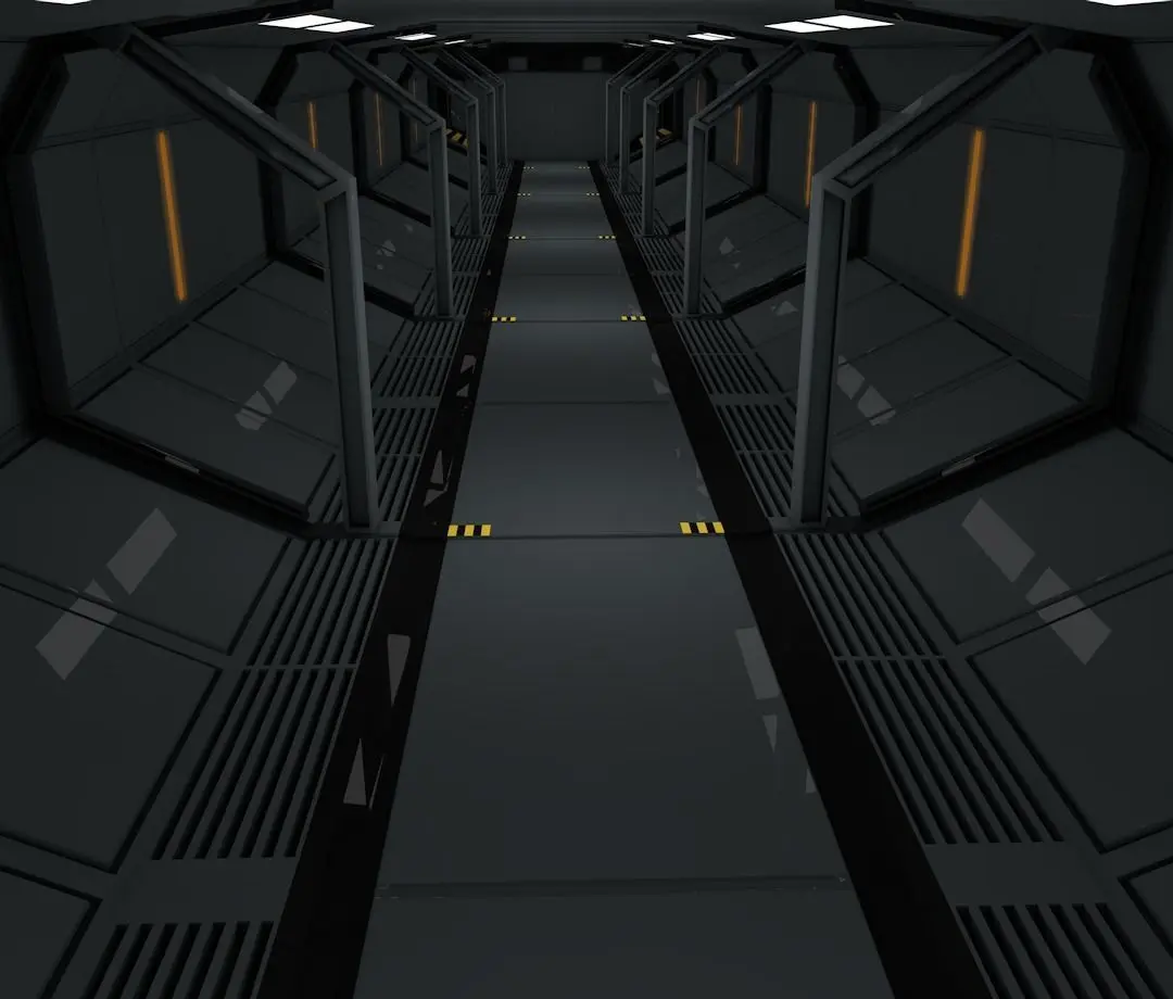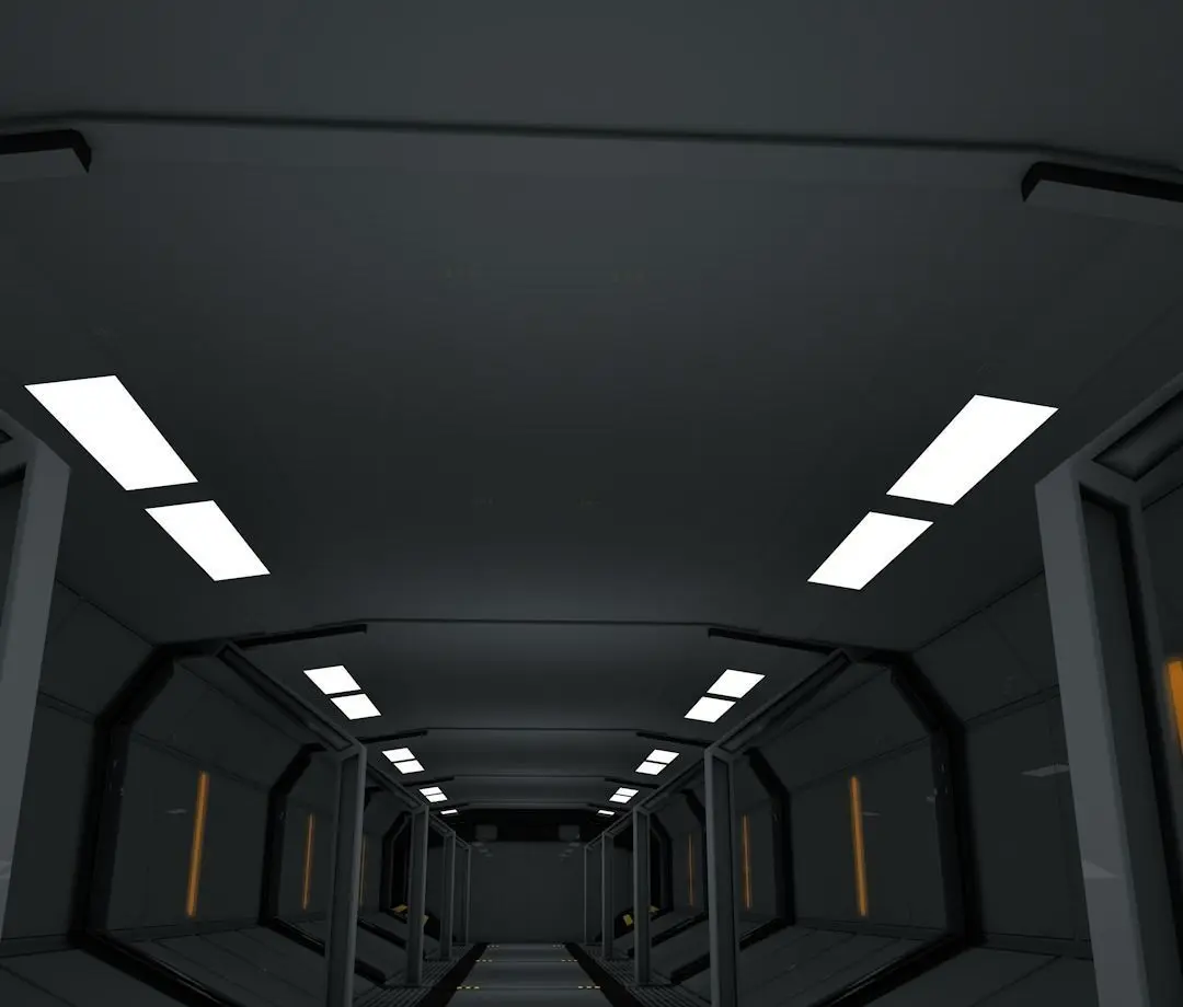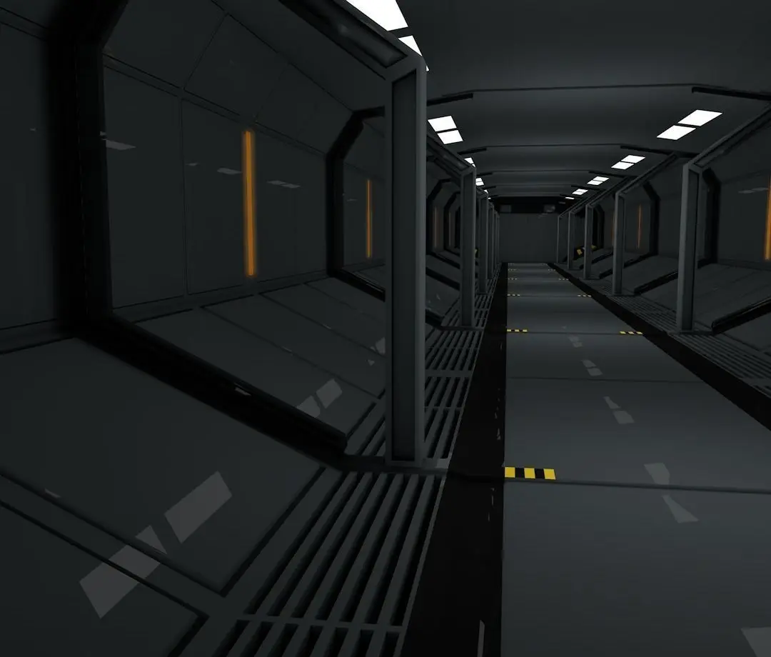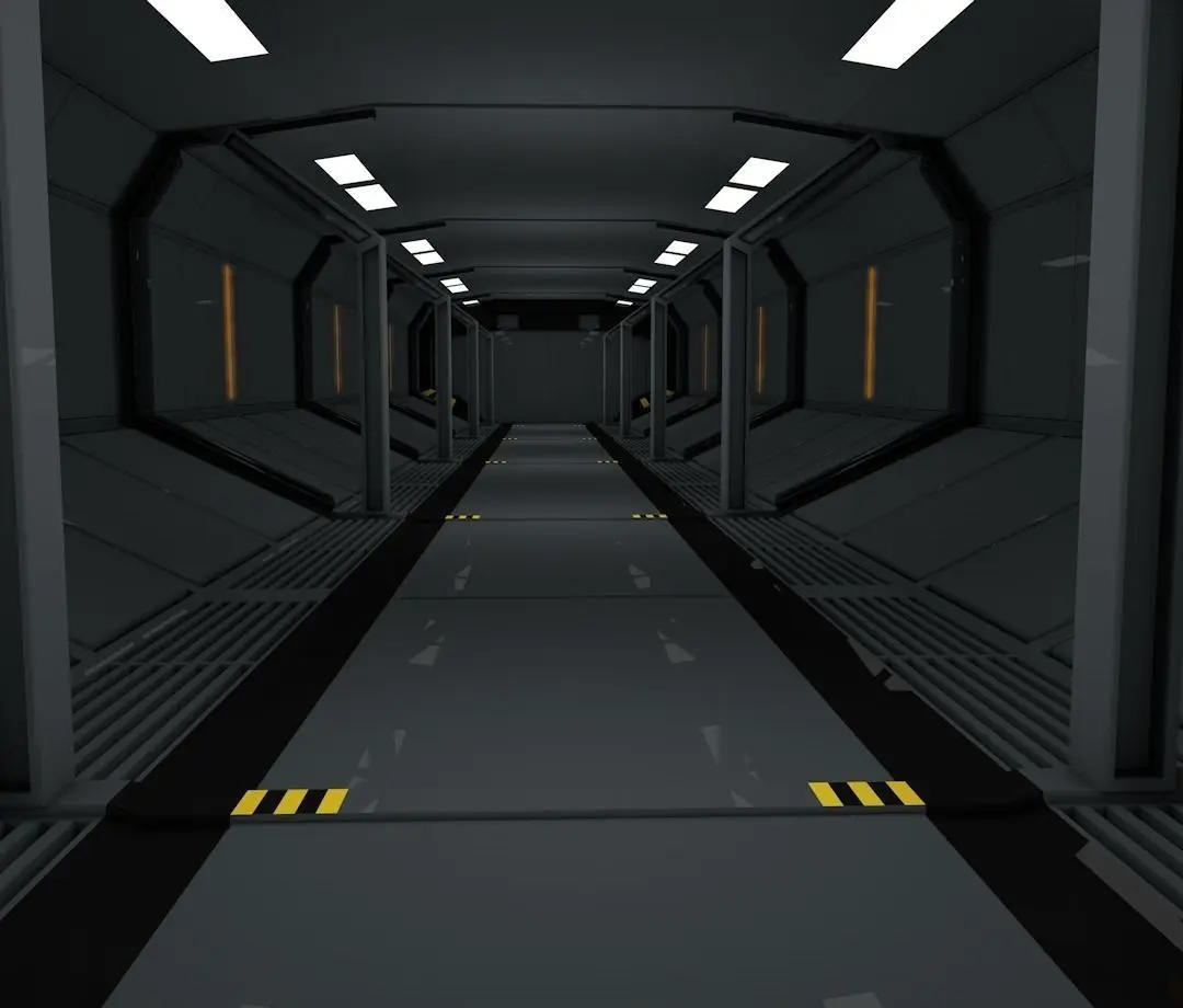 > The scifi corridor is ready to animate.