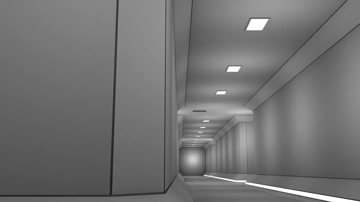 This is a 3d model of a Low Poly Sci Fi Corridor