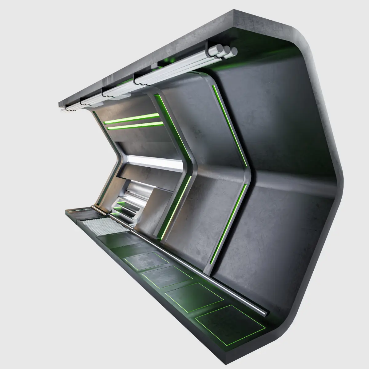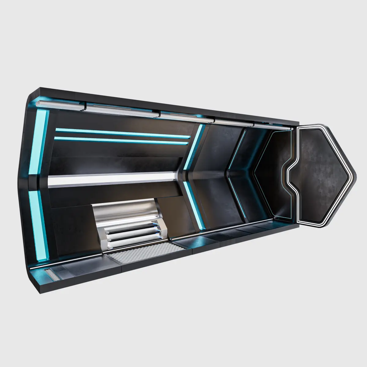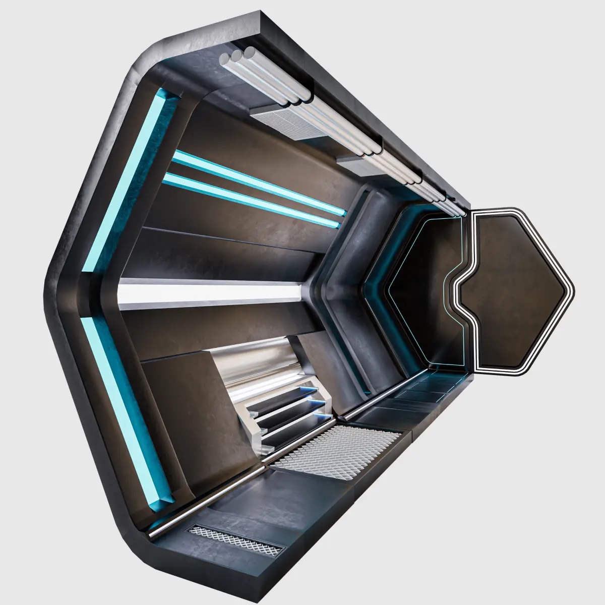 Science Fiction Hexagon Corridor All objects are grouped, Easy Modular structure, it is very easy to change the length of the tunnel by changing array values and the lighting colors can be changed easily