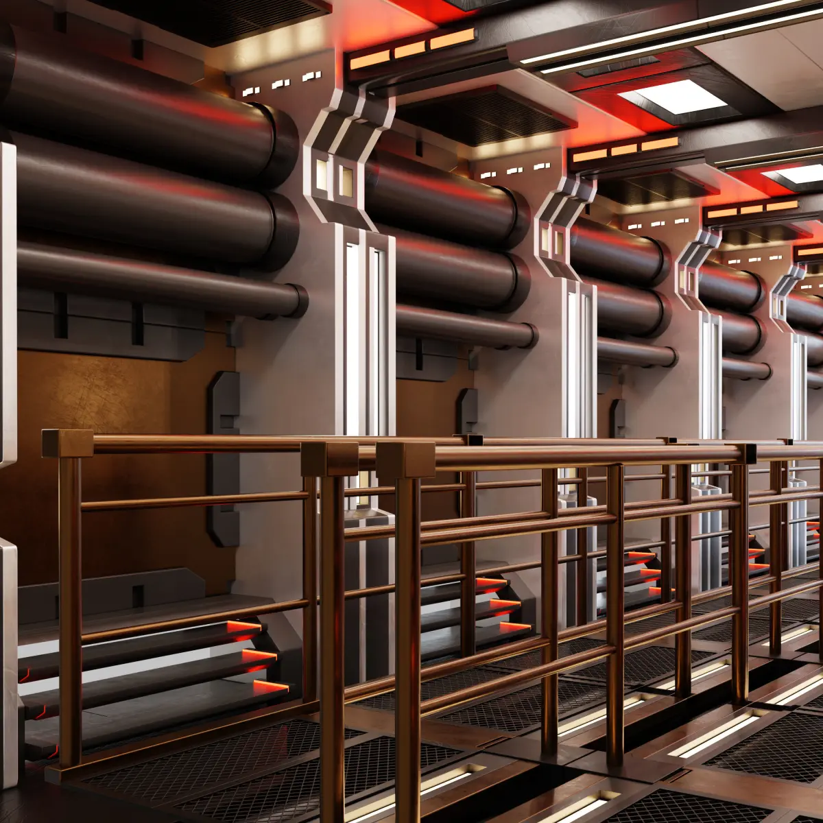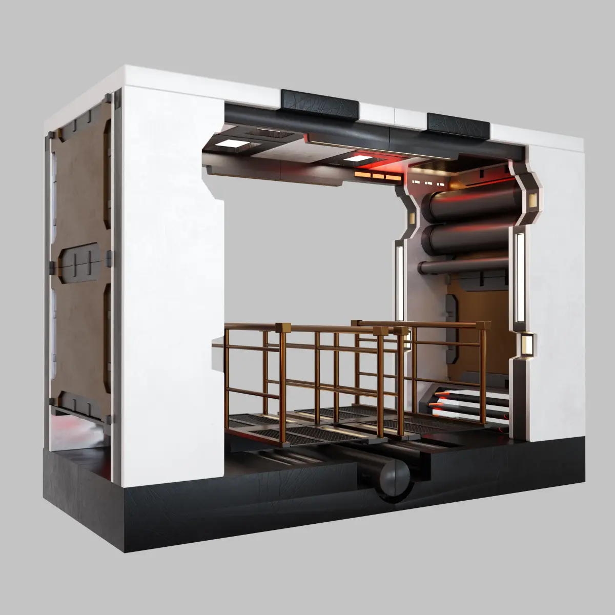 Science Fiction Corridor All objects are grouped, Easy Modular structure, it is very easy to change the length of the tunnel by changing array values and the lighting colors can be changed easily