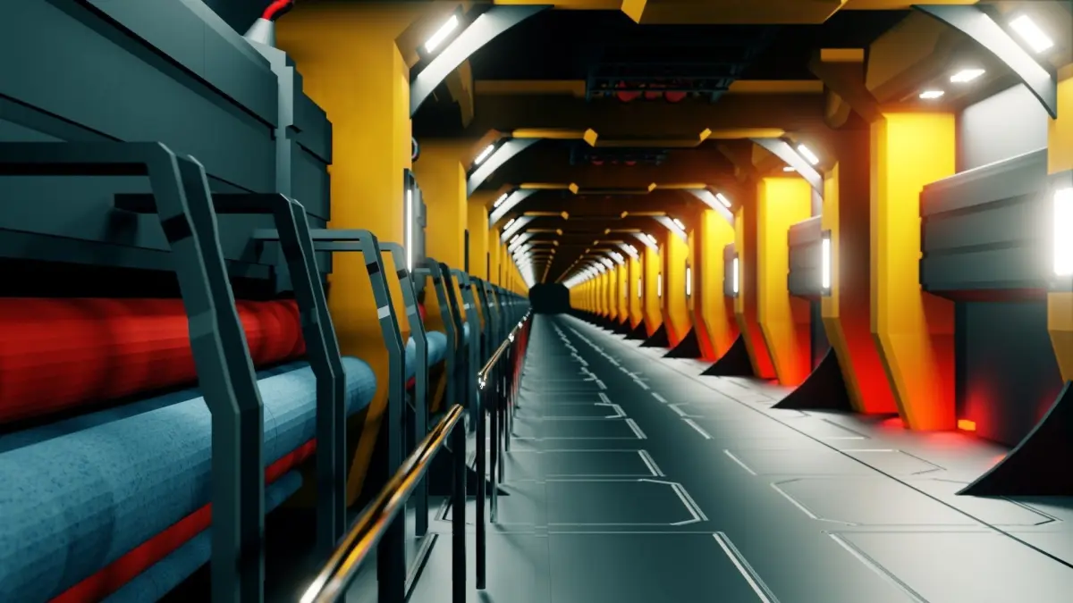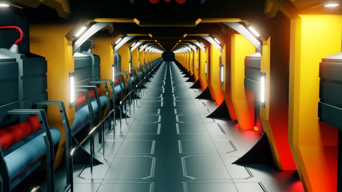 Sci-Fi Corridor 3D model. Made in Blender 2.93 and Rendered in EEVEE. Simple and Unique 3D model.This is a Low Poly 3D model.Proper Lightings are made.Length of Corridor can be adjusted by modifying the array.Currently Made this for 20 array units.
