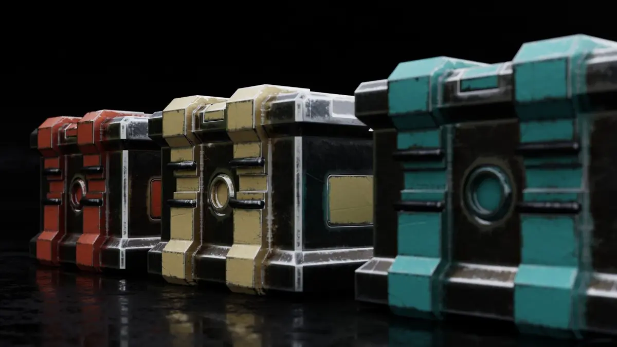 *Sci-fi crates *Same model with 6 different materials.All materials are assigned in blender file and textures are packed.Other file formats have one model and there are 6 diffuse texture variations in textures.rar(Roughness,Metalic and Normal maps are same for all 6 materials)