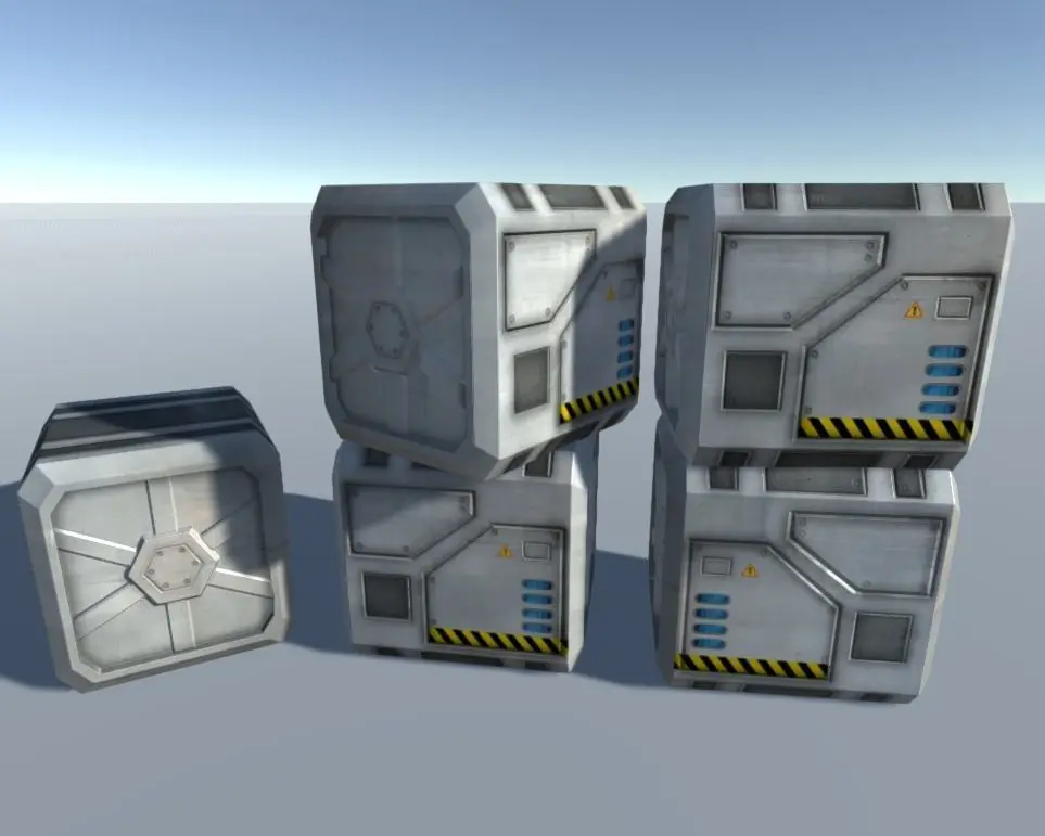 This is a collection of 5 low poly sci fi crates. Each crate comes with a normal map, color map, and specular/metallic map. Can be used for first person or third person games. The models have been optimized to have as little of polys as possible while retaining enough shape for close up views.
