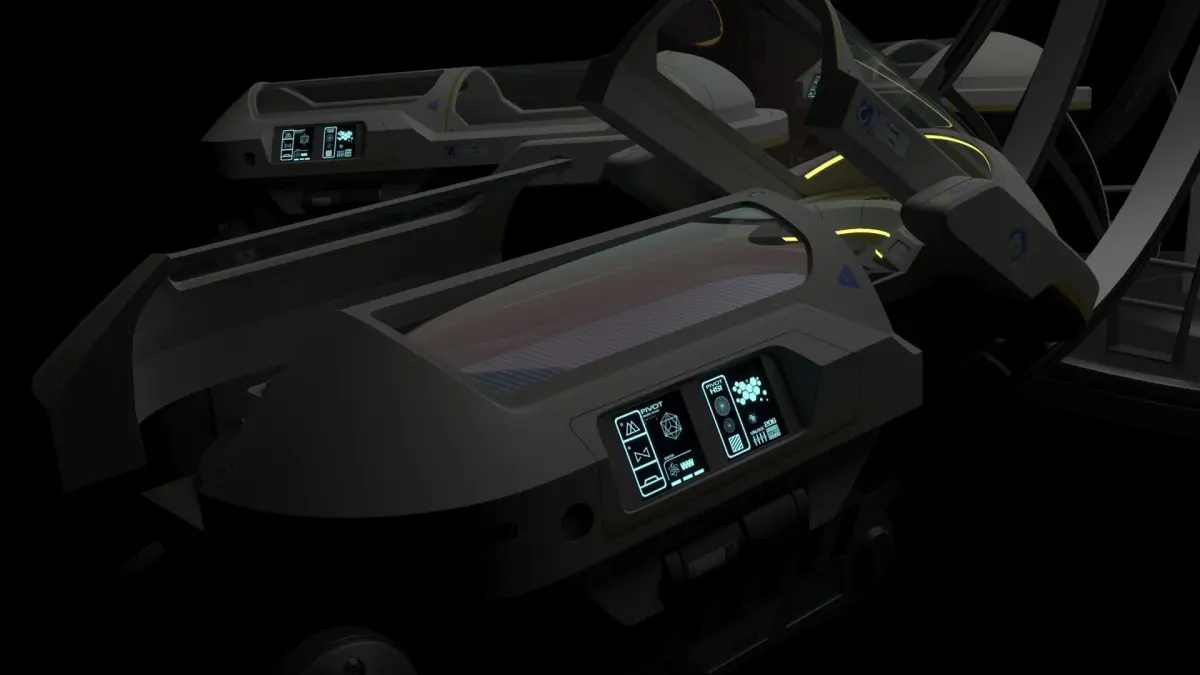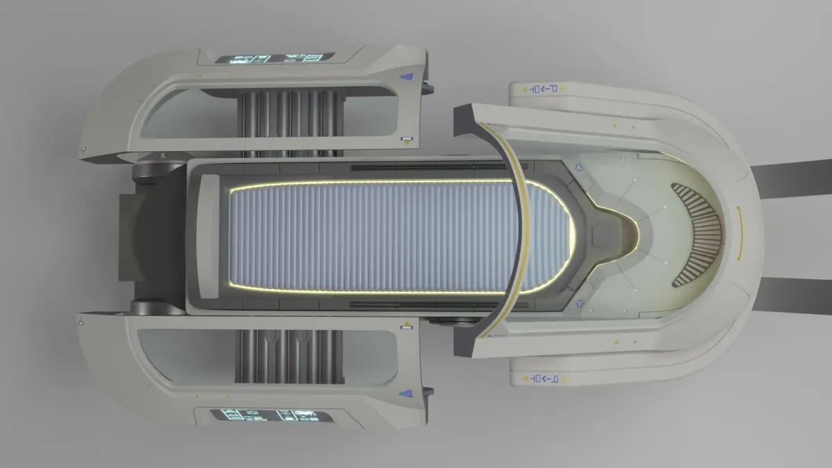 This is a high detailed 3d model of a cryogenic pod. It includes both closed and open versions and also a station column.