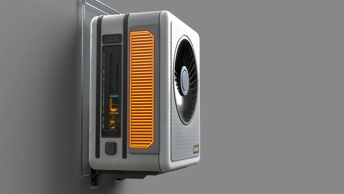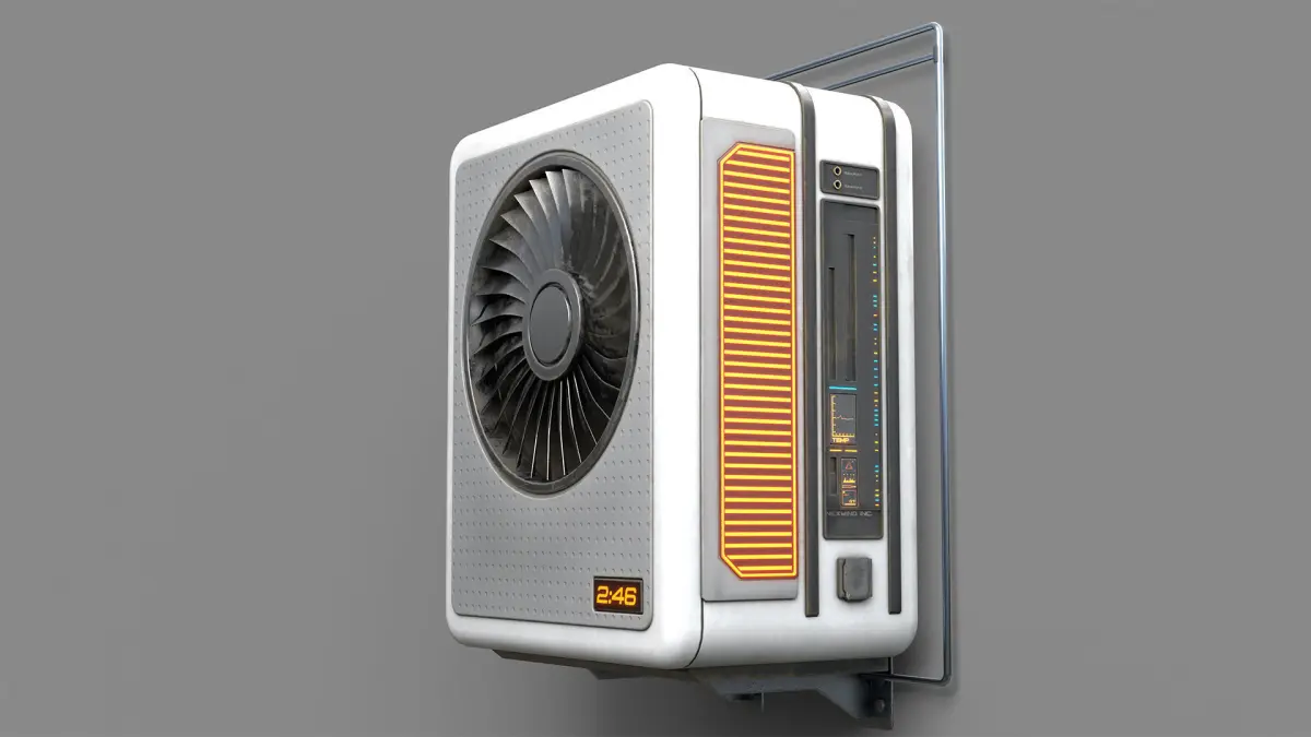 A sci-fi cyberpunk air conditioning unit. Created in Blender and textured in Substance painter. Uses baked textures including baked normals. Has one 4k set of textures for the main body, and one 1k/2k set of textures for the side panels. High texel density, which is ideal for FPS games or cinematics. Normal maps are in OpenGL style. Topology is all quads and tris. The last preview image is of the model rendered in Unreal Engine 5.4
