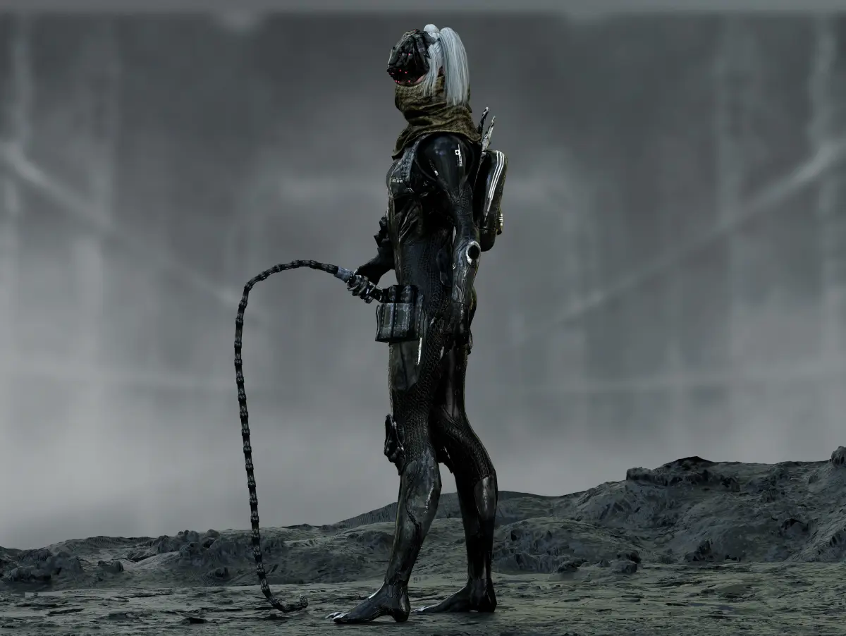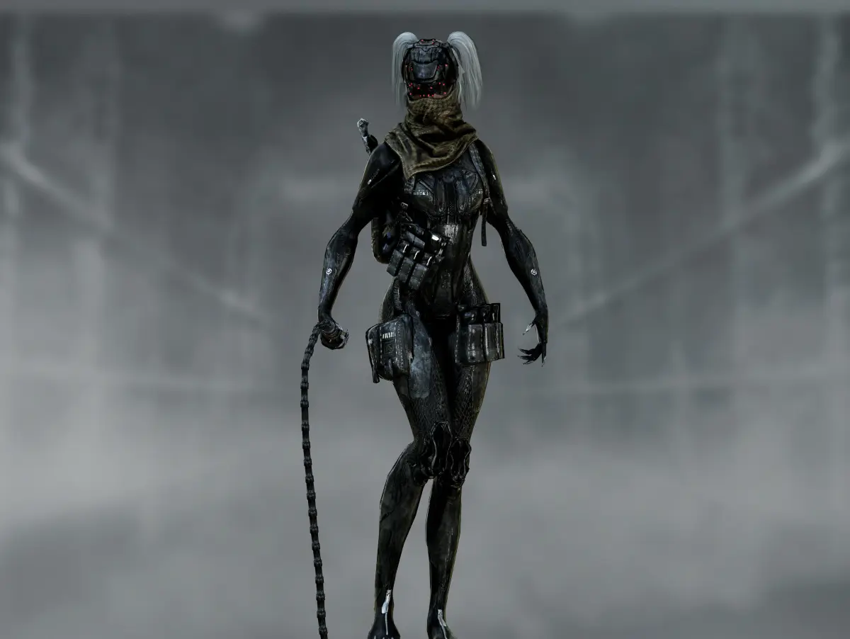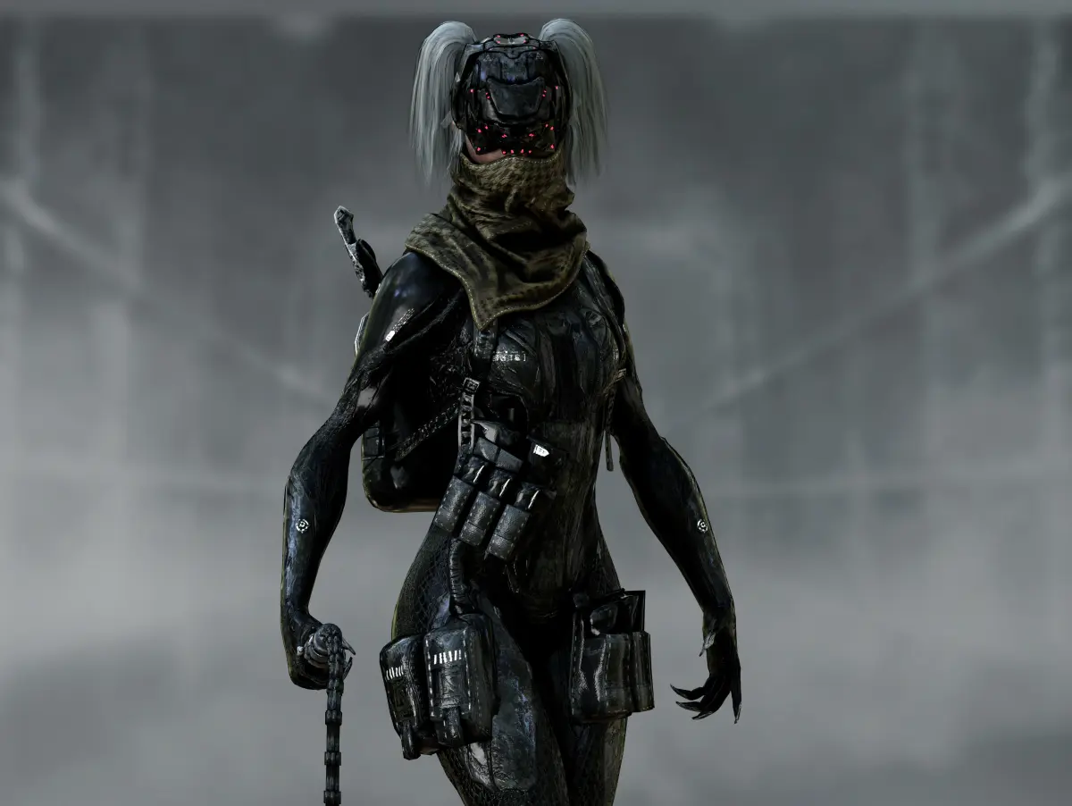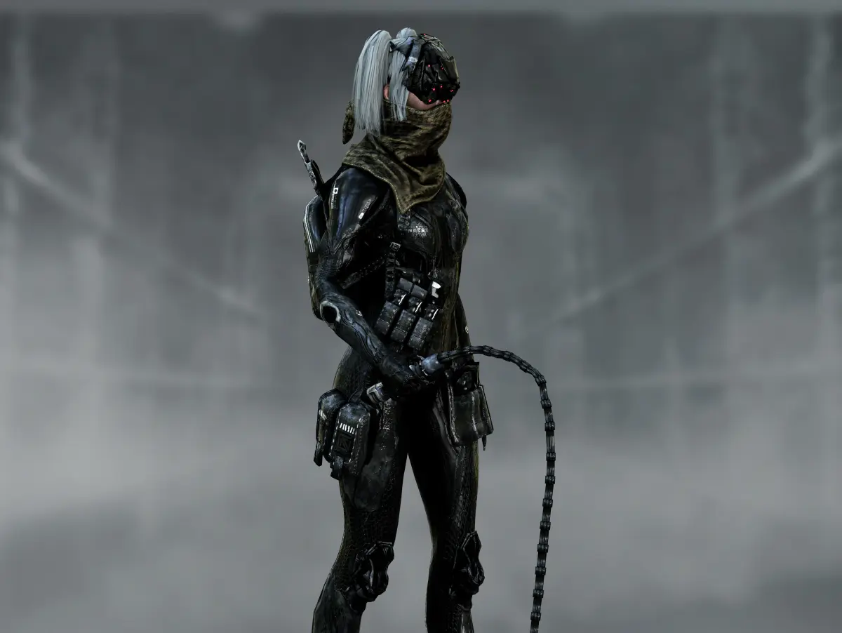 Detailed low poly 3D character Sci Fi Cyberpunk Valkyrie