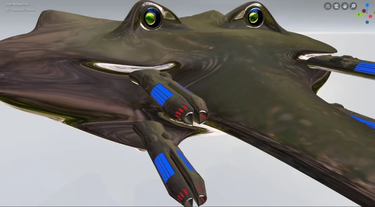 - Visual sensor (eye, 2 pieces / drone)Comment:The body of the ship and the weapon material are a well-reflected surface, the uploaded images illustrate the texture mode. In Render mode, the image is influenced by both the world and the light settings.