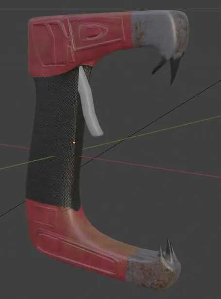 Gun, trigger, and wheel are separate objects for potential constraints and/or animation.