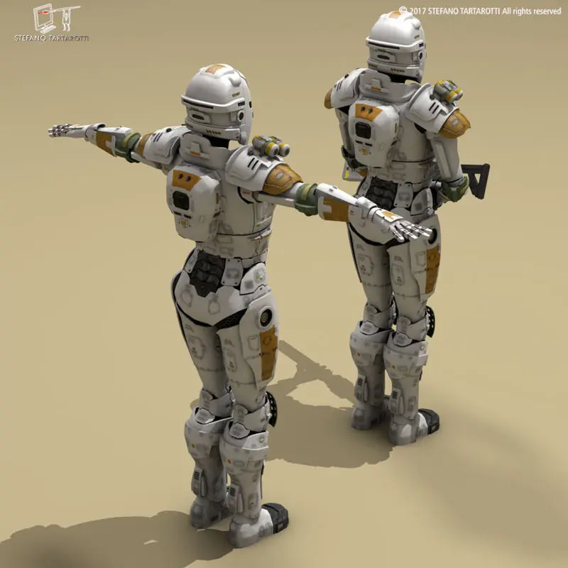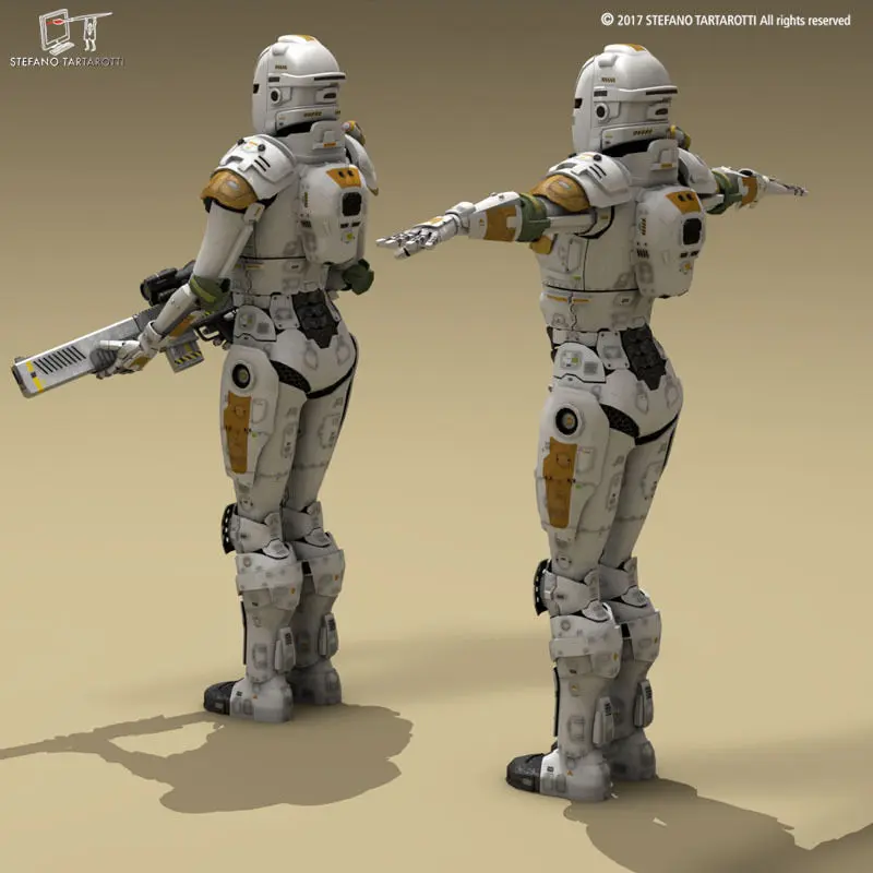 3d model of Sci-fi female armoured soldier with original design and sci-fi rifle model enclosed.I made it for some sci-fi illustration.