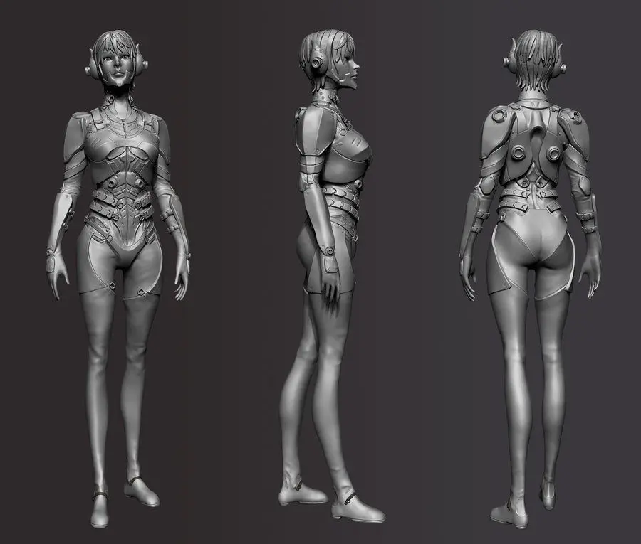 Zbrush High-poly model of Sci-Fi Female Soldier.