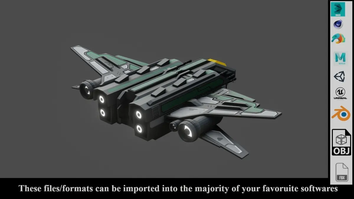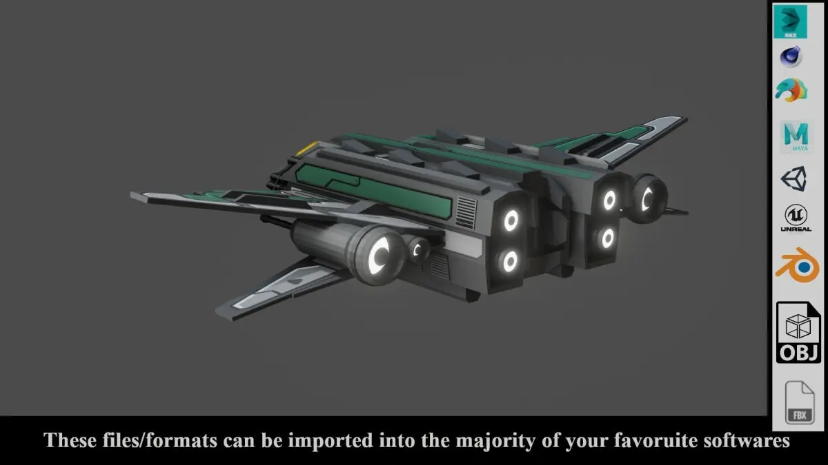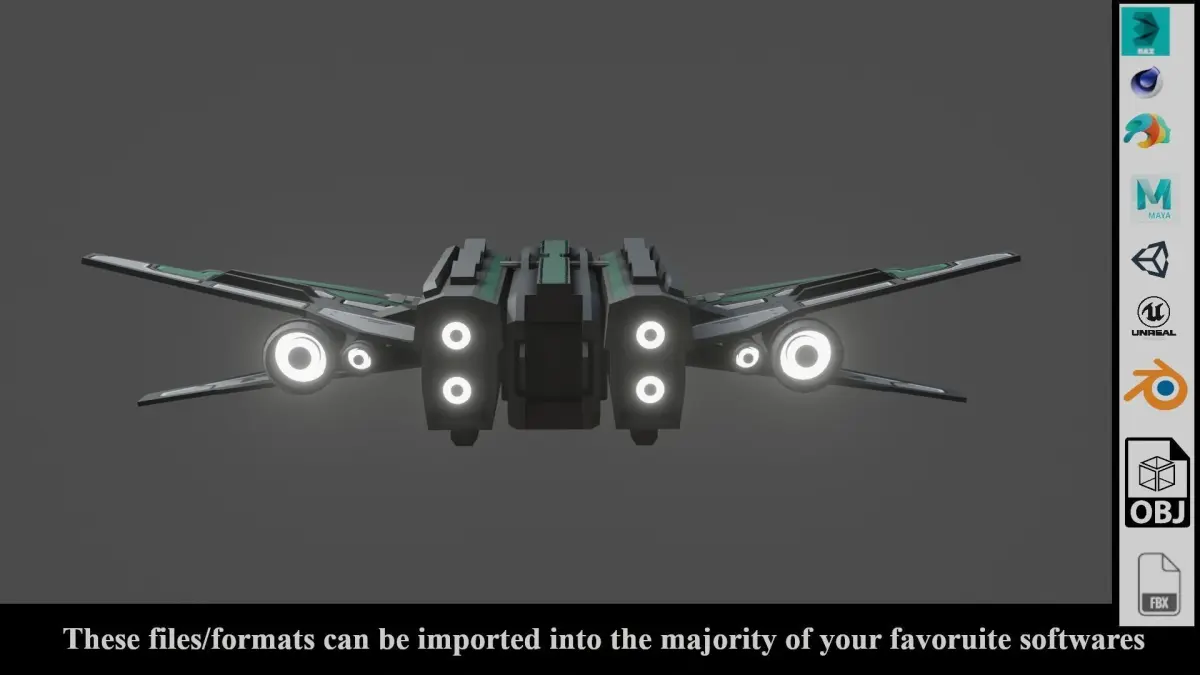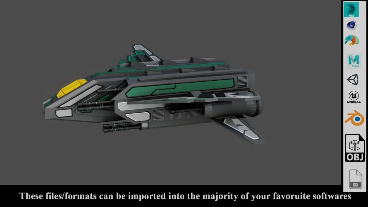 This sci-fi space ship 3d model is available in 5 Formats:Available Formats: