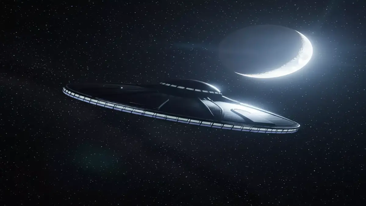 A high-quality Flying Saucer UFO 3D model designed with a sleek futuristic aesthetic, perfect for sci-fi environments, games, animations, and cinematic renders.