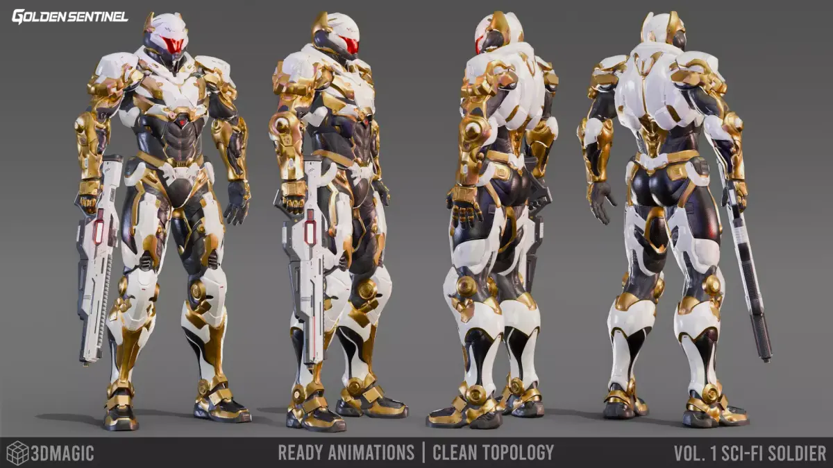 Golden Sentinel – Sci-Fi Futuristic Armor Soldier