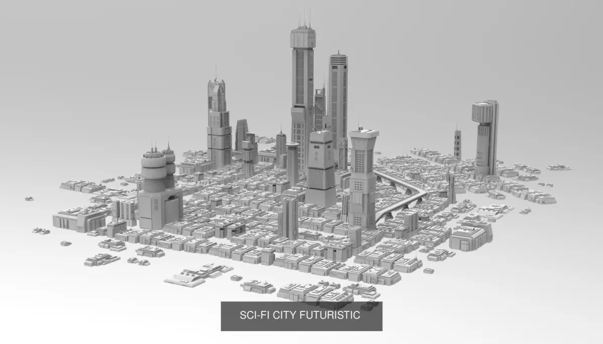 There are 45 sci-fi buildings models in Total, you can arrange and place them according to your wishYou will also get one file that is a coherent city already assembled and arranged